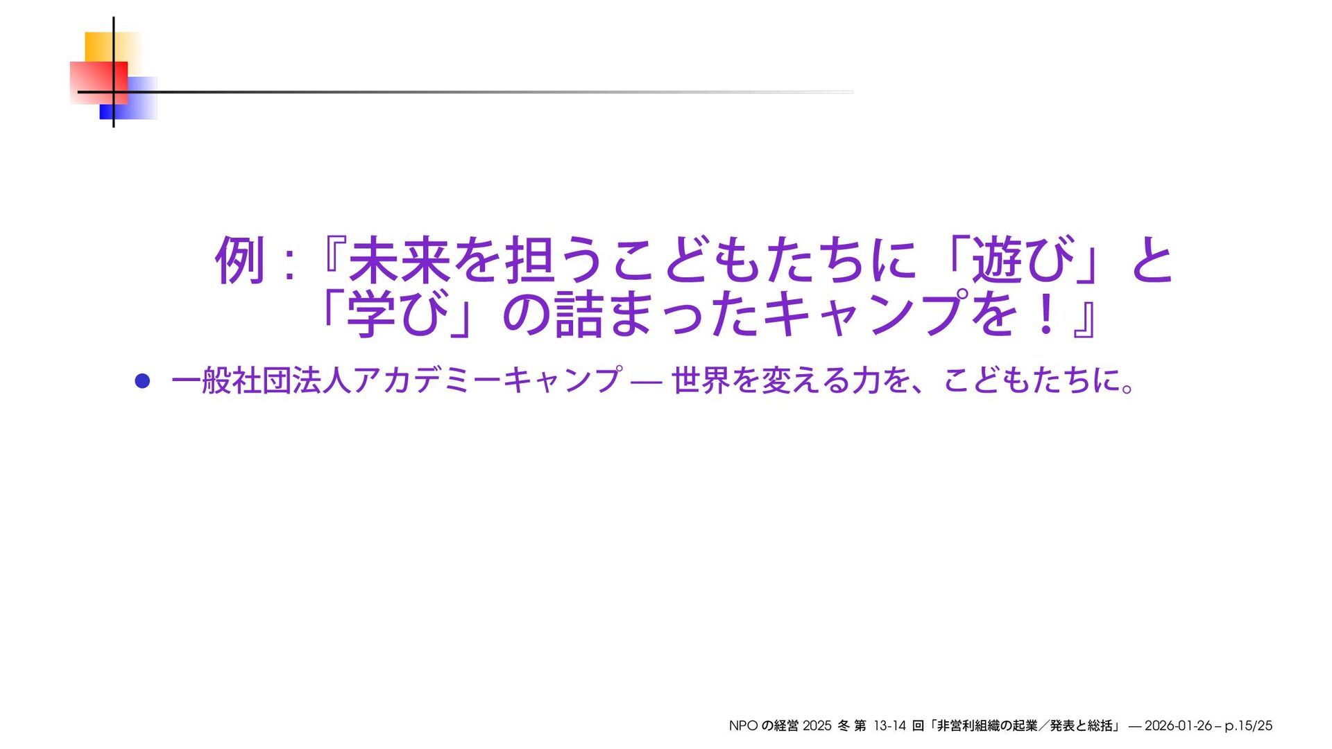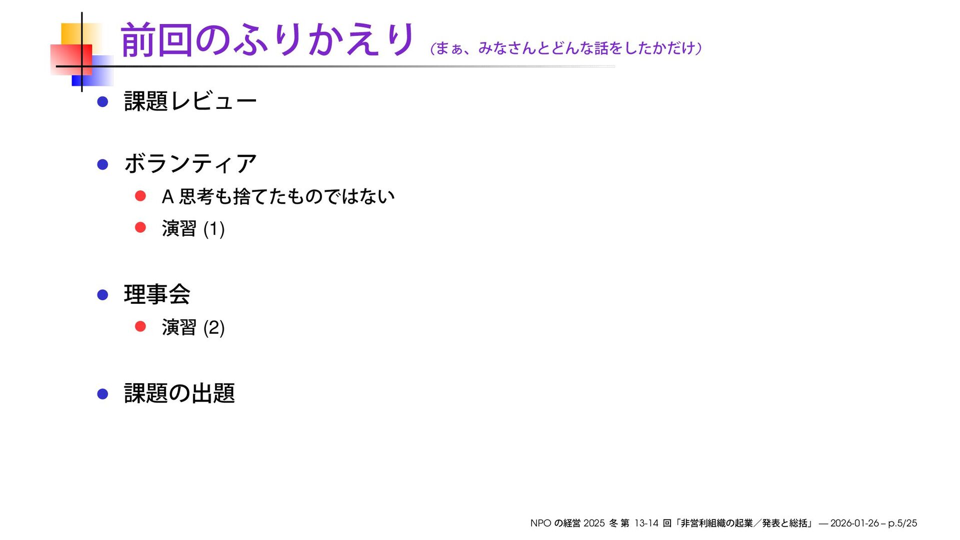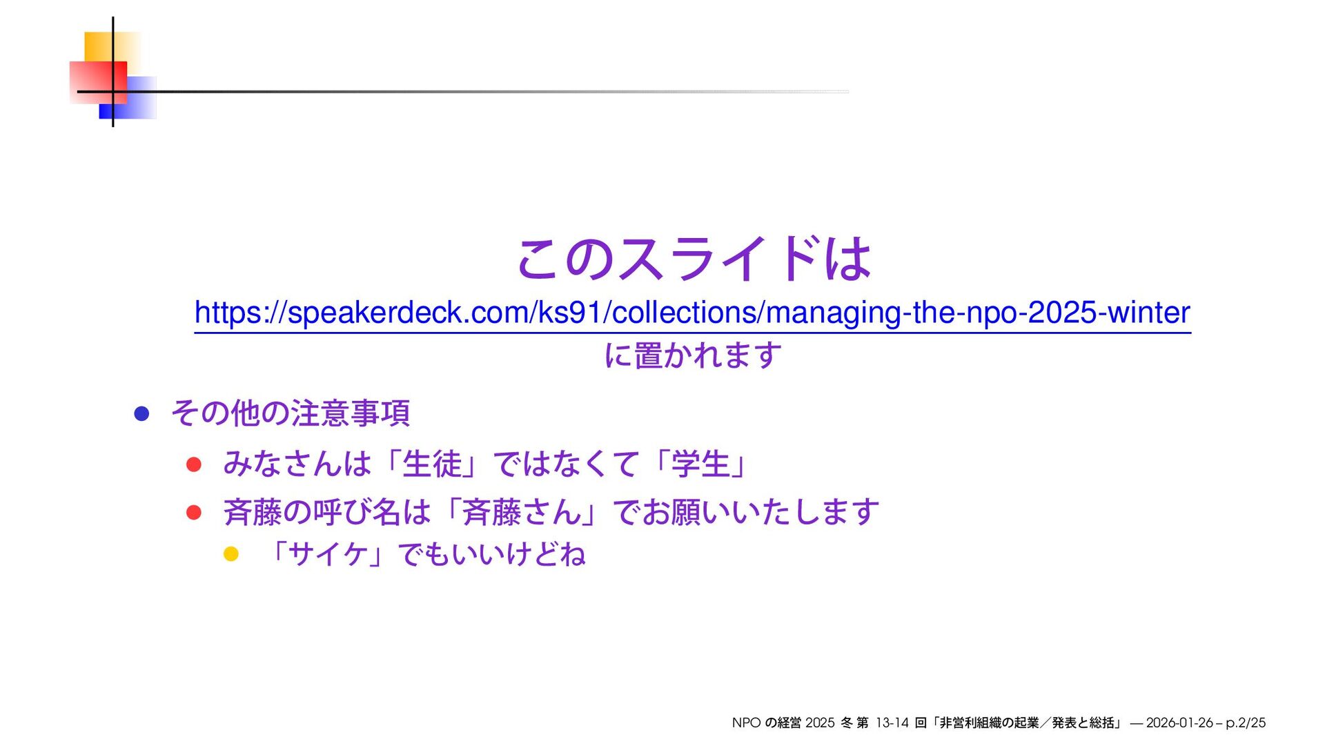https://speakerdeck.com/ks91/collections/managing-the-npo-2025-winter NPO 2025 13-14 — 2026-01-26 – p.2/25