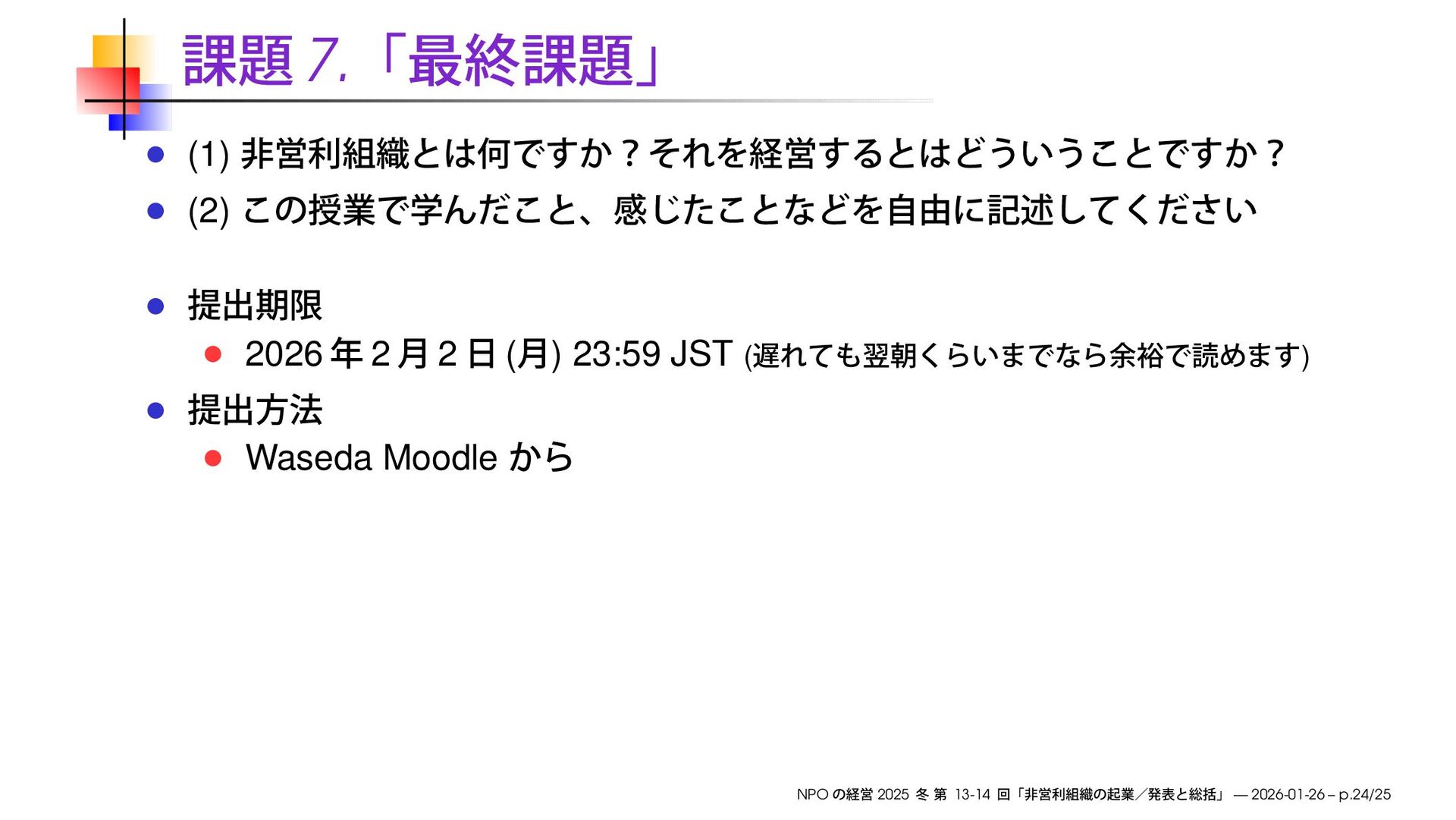 ( ) Waseda Moodle NPO 2025 13-14 — 2026-01-26 – p.24/25