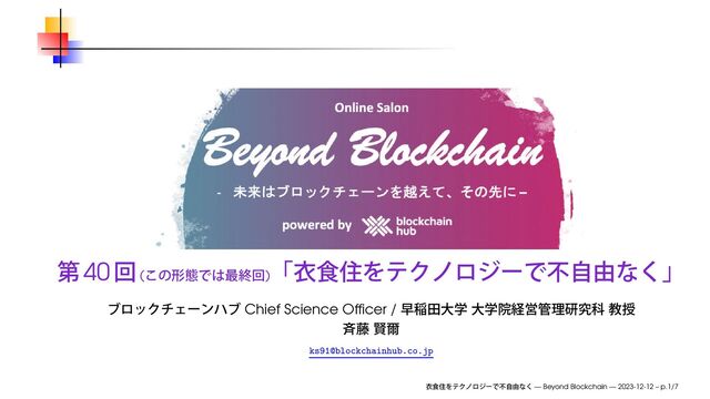 2023年12月12日(火)、オンラインサロン Beyond Blockchain 第40回にて使用したスライドです。