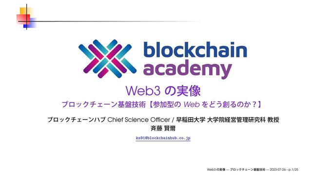 2023年7月26日(水)、ブロックチェーンハブ主催のブロックチェーンアカデミーにて使用したスライドです。