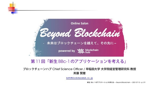 2021年7月13日(火)、オンラインサロン Beyond Blockchain 第11回「新生 BBc-1 のアプリケーションを考える」にて使用したスライドです。