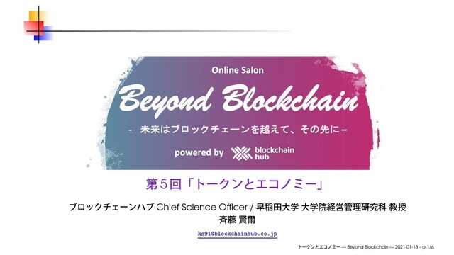 2021年1月18日(月)、オンラインサロン Beyond Blockchain 第5回「トークンとエコノミー」にて使用したスライドです。