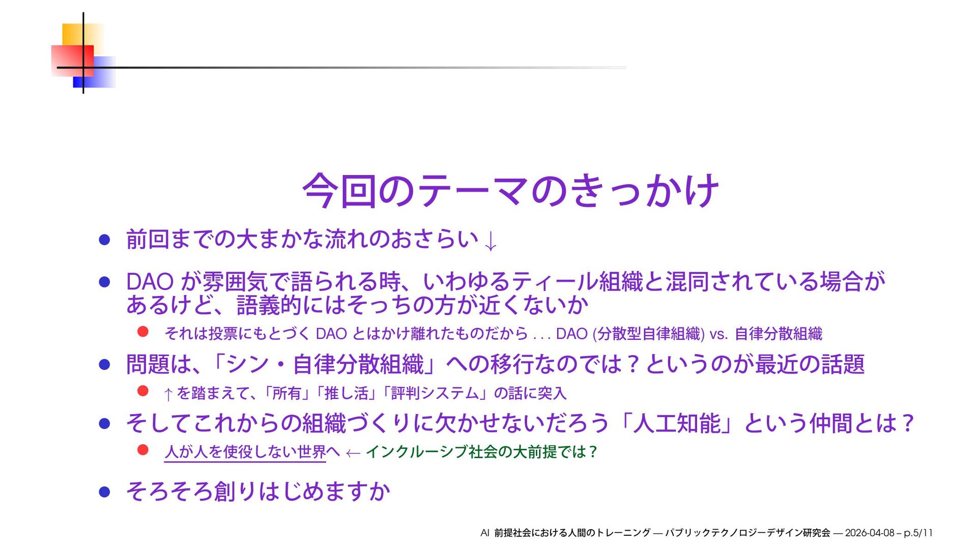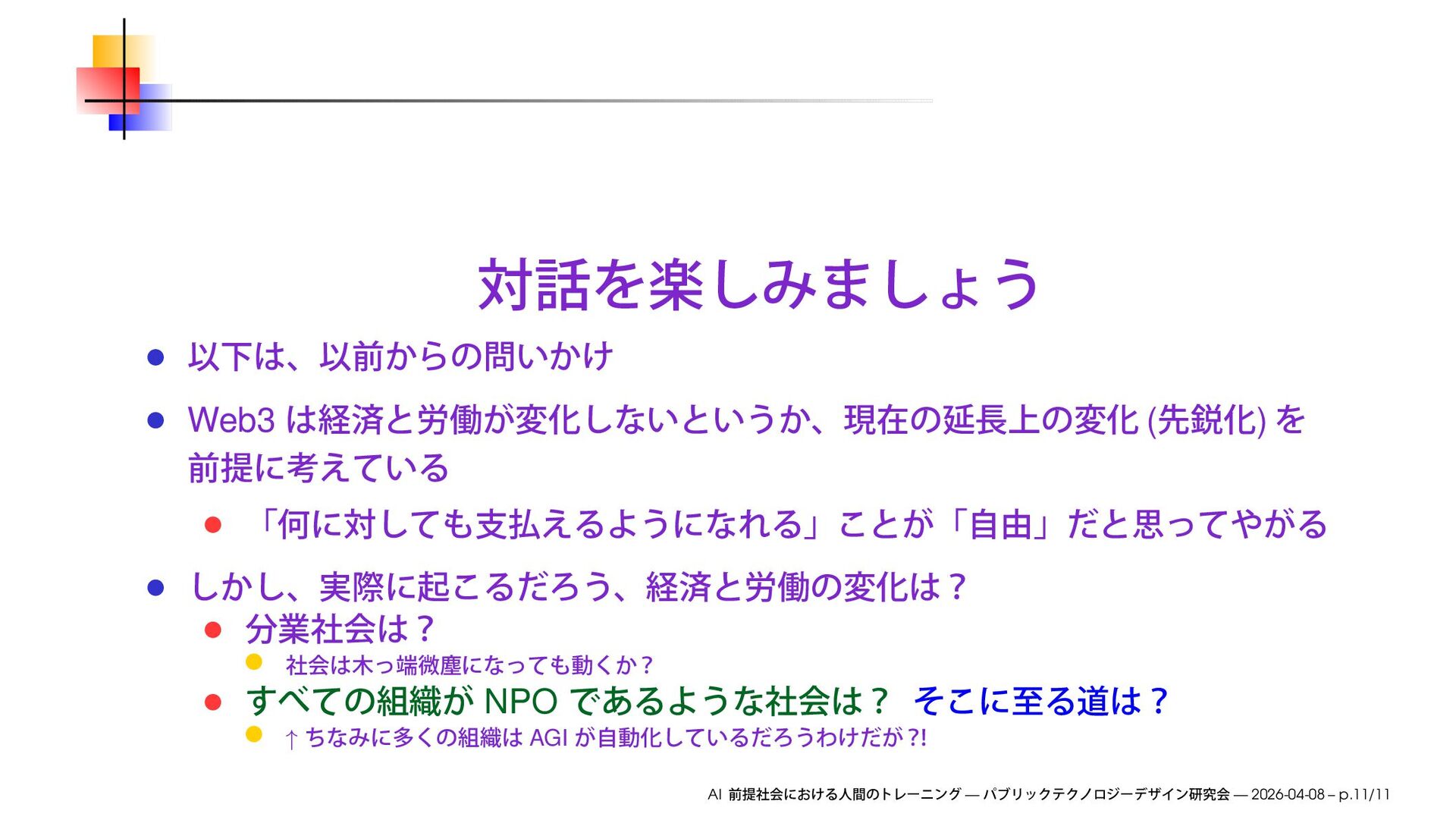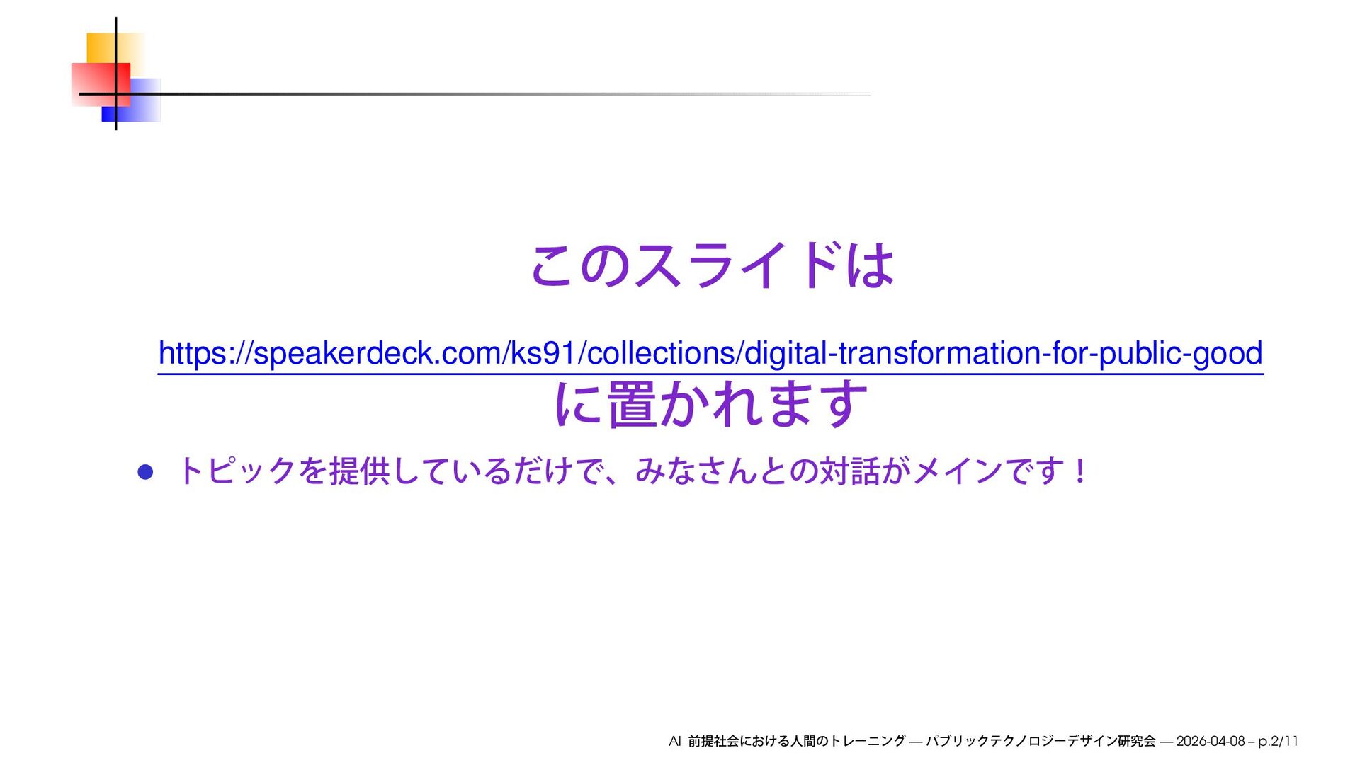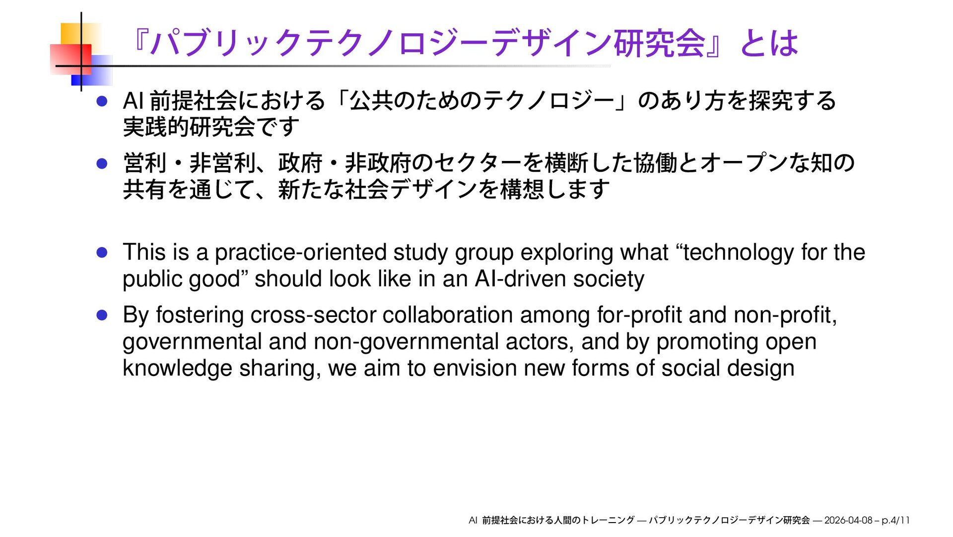 for the public good” should look like in an AI-driven society By fostering cross-sector collaboration among for-profit and non-profit, governmental and non-governmental actors, and by promoting open knowledge sharing, we aim to envision new forms of social design AI — — 2026-04-08 – p.4/11