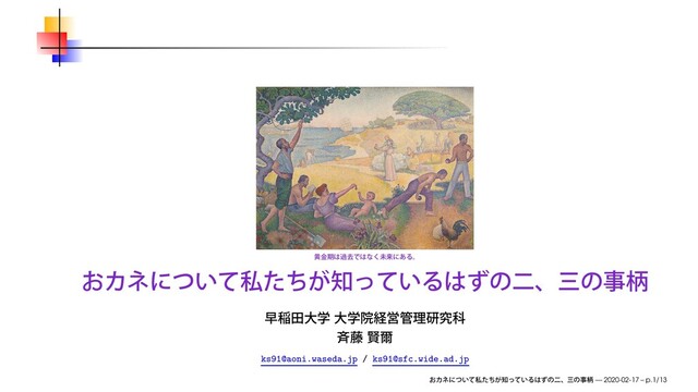 future are somewhat different. You see, money doesn’t exist in the 24th century. . . . The acquisition of wealth is no longer the driving force in our lives. We work to better ourselves and the rest of humanity.” — Capt. Jean-Luc Picard : ⇒ — 2020-02-17 – p.11/13