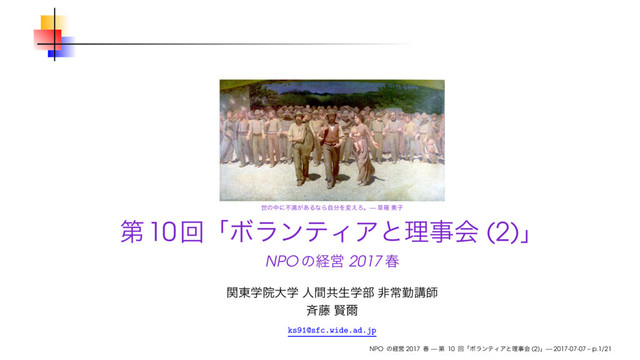 NPO の経営 2017春 第10回「ボランティアと理事会 (2)」 / Volunteers...