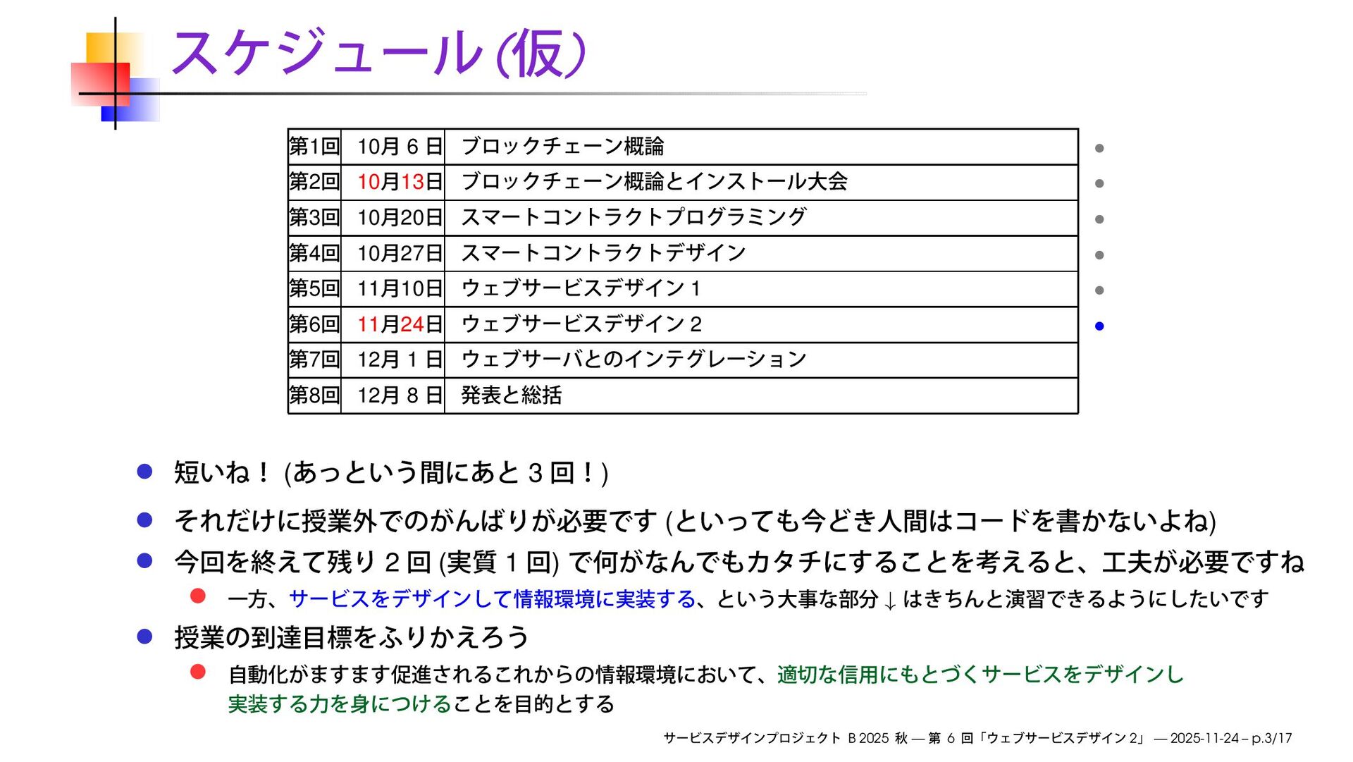 3 10 20 • 4 10 27 • 5 11 10 1 • 6 11 24 2 • 7 12 1 8 12 8 ( 3 ) ( ) 2 ( 1 ) ↓ B 2025 — 6 2 — 2025-11-24 – p.3/17