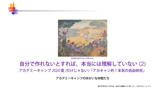 2020年9月27日(日)、オンラインで行われたアカデミーキャンプ 2020夏(だけじゃない)「アカキャン的!本気の自由研究」第10回にて使用したスライドです。