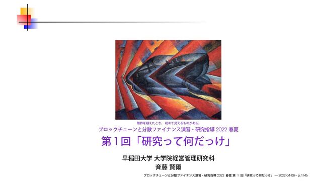 2022年4月8日(金)、早稲田大学 大学院経営管理研究科「ブロックチェーンと分散ファイナンス演習研究指導」で使用したスライドです。