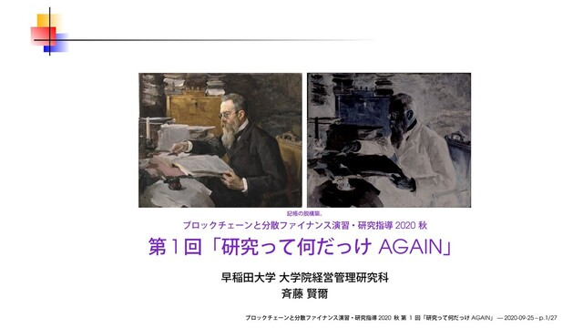 ブロックチェーンと分散ファイナンス演習・研究指導 第1回「研究って何だっけ AGAIN」 / ...