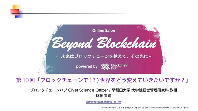 2021年6月8日(火)、オンラインサロン Beyond Blockchain 第10回「ブロックチェーンで(?) 世界をどう変えていきたいですか?」にて使用したスライドです。