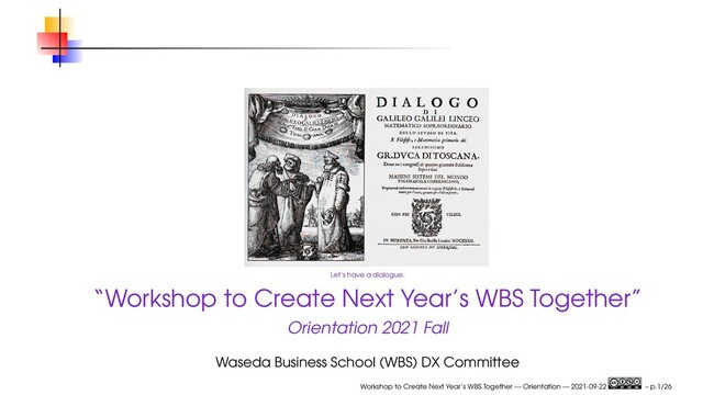 Together” Orientation 2021 Fall Waseda Business School (WBS) DX Committee Workshop to Create Next Year’s WBS Together — Orientation — 2021-09-22 – p.1/26