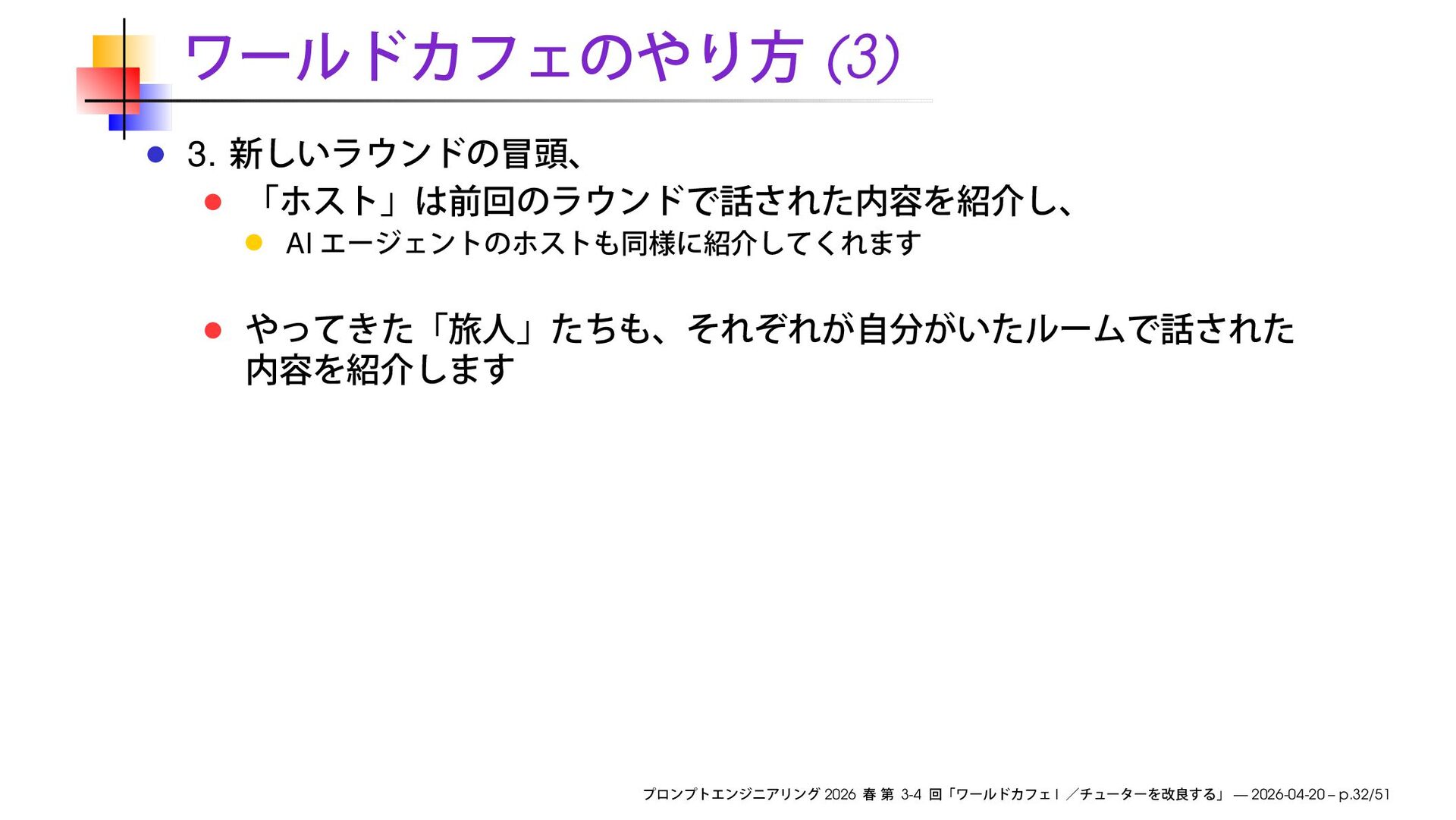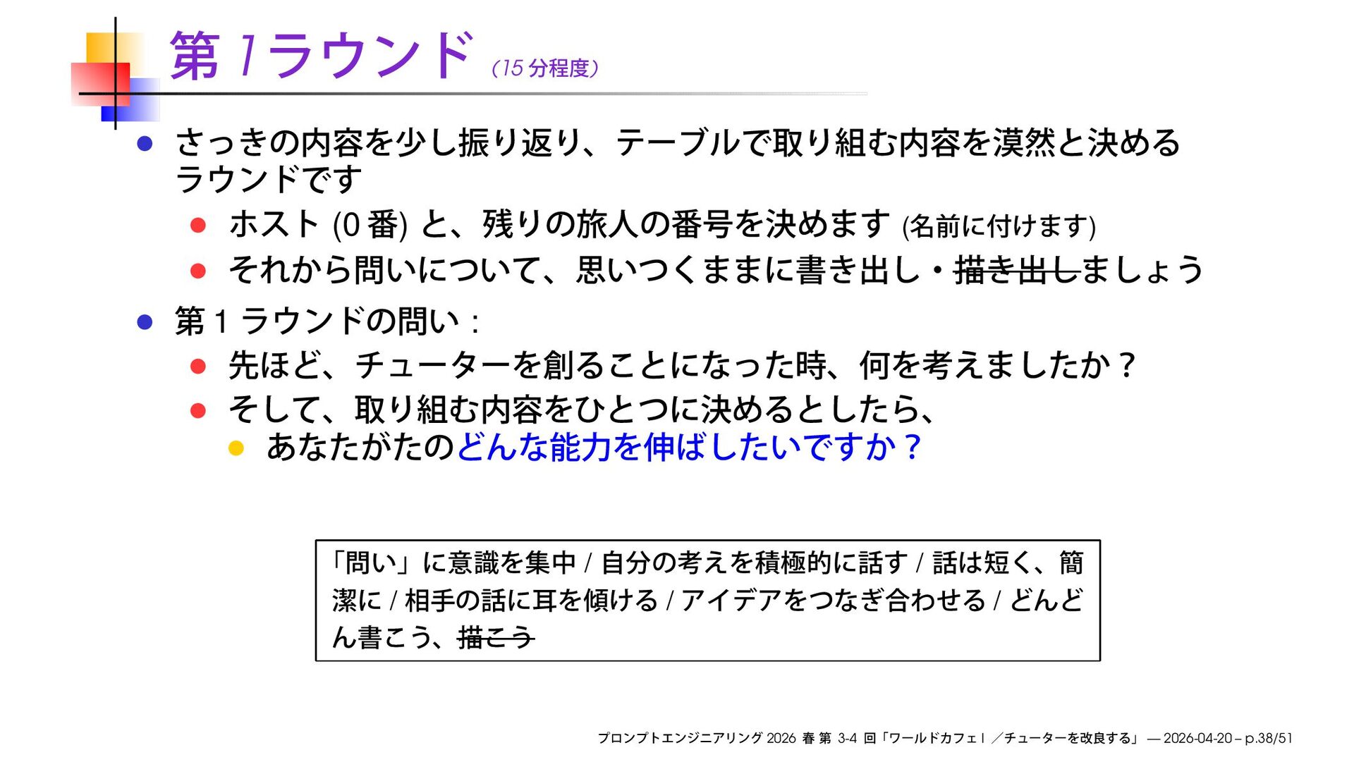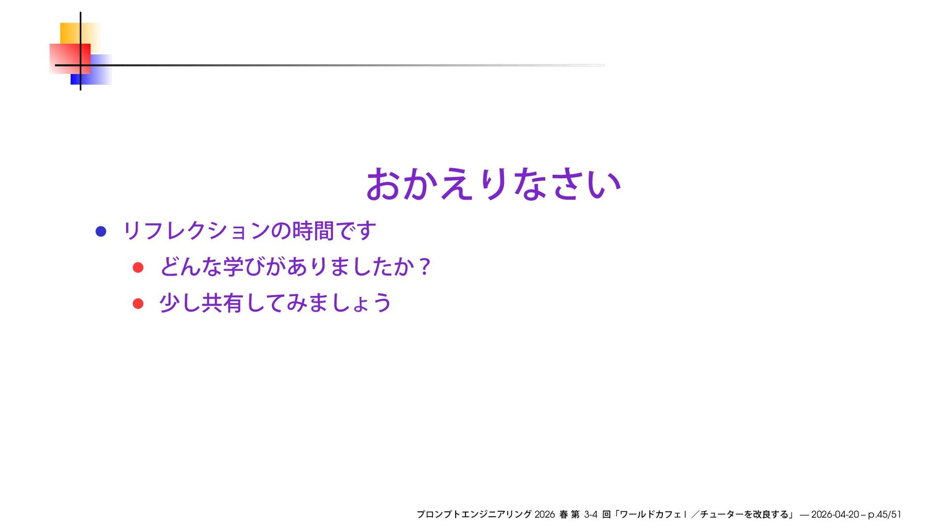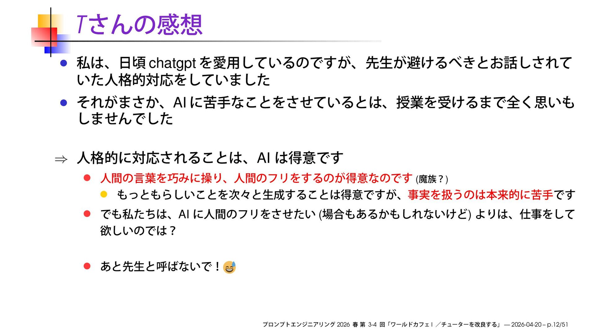 https://speakerdeck.com/ks91/collections/prompt-engineering-2026-spring Discord loglm ( ) 2026 3-4 I — 2026-04-20