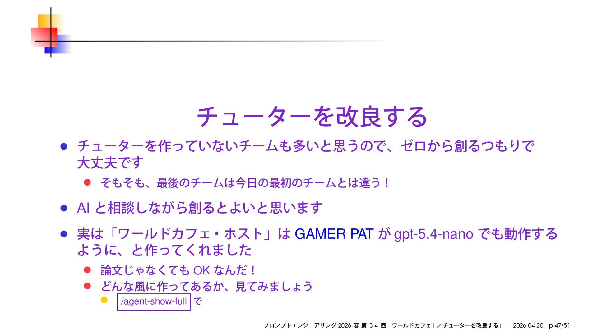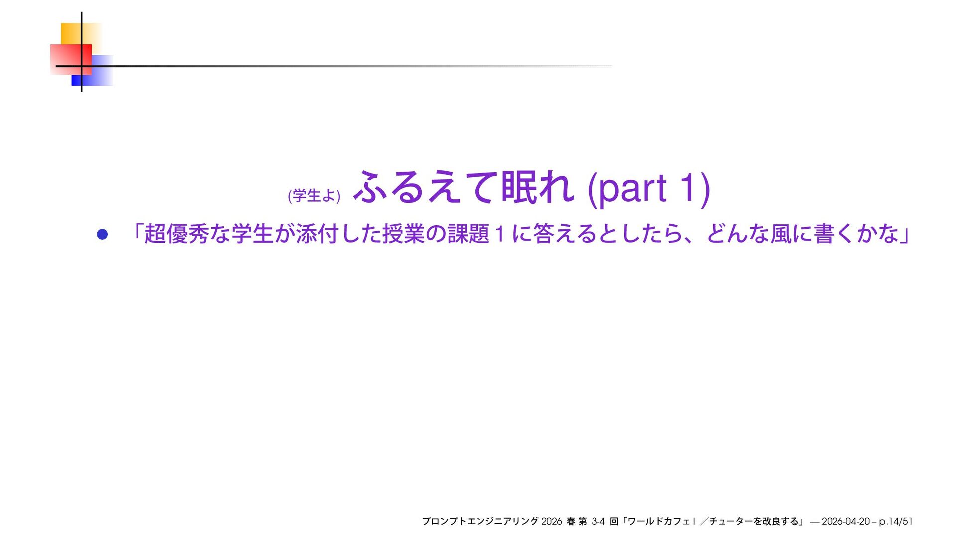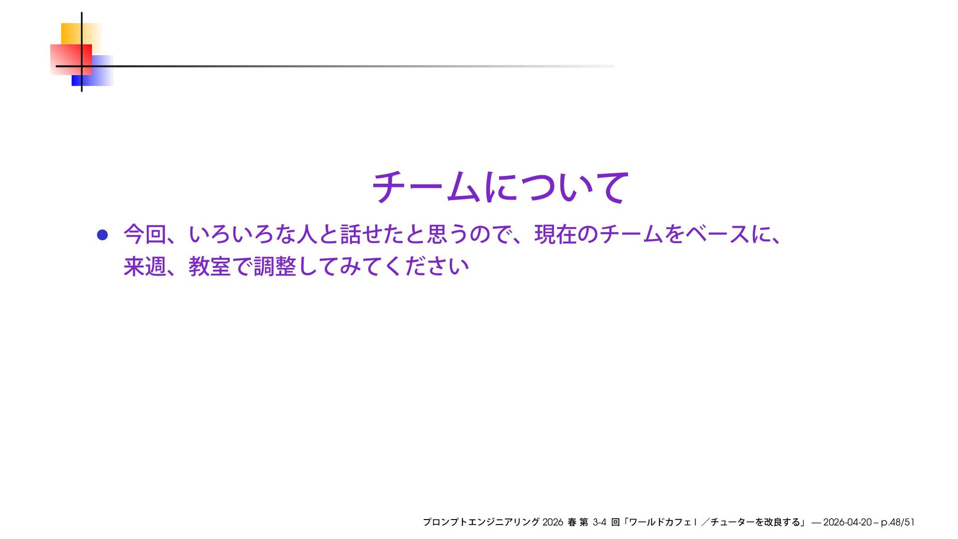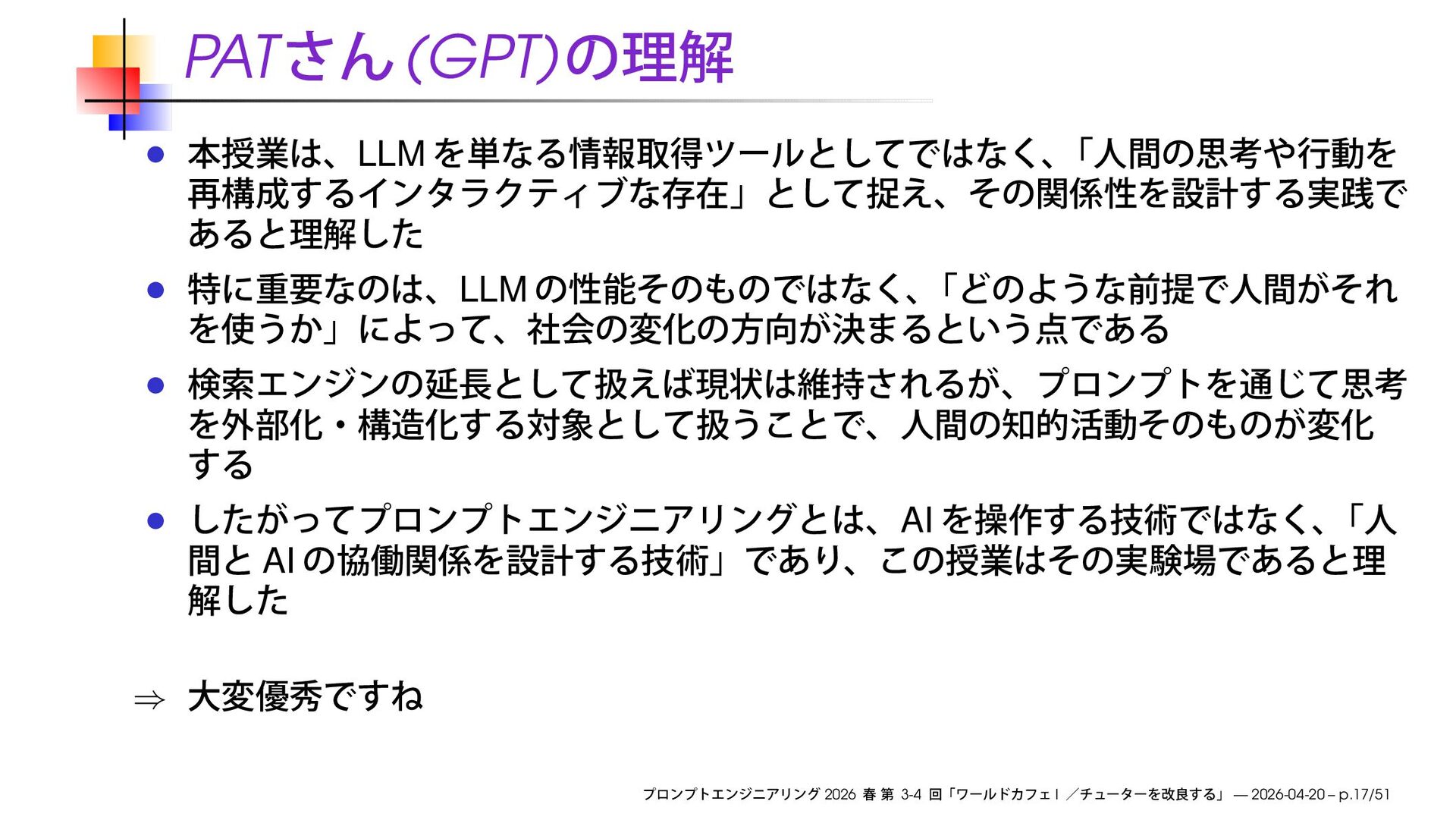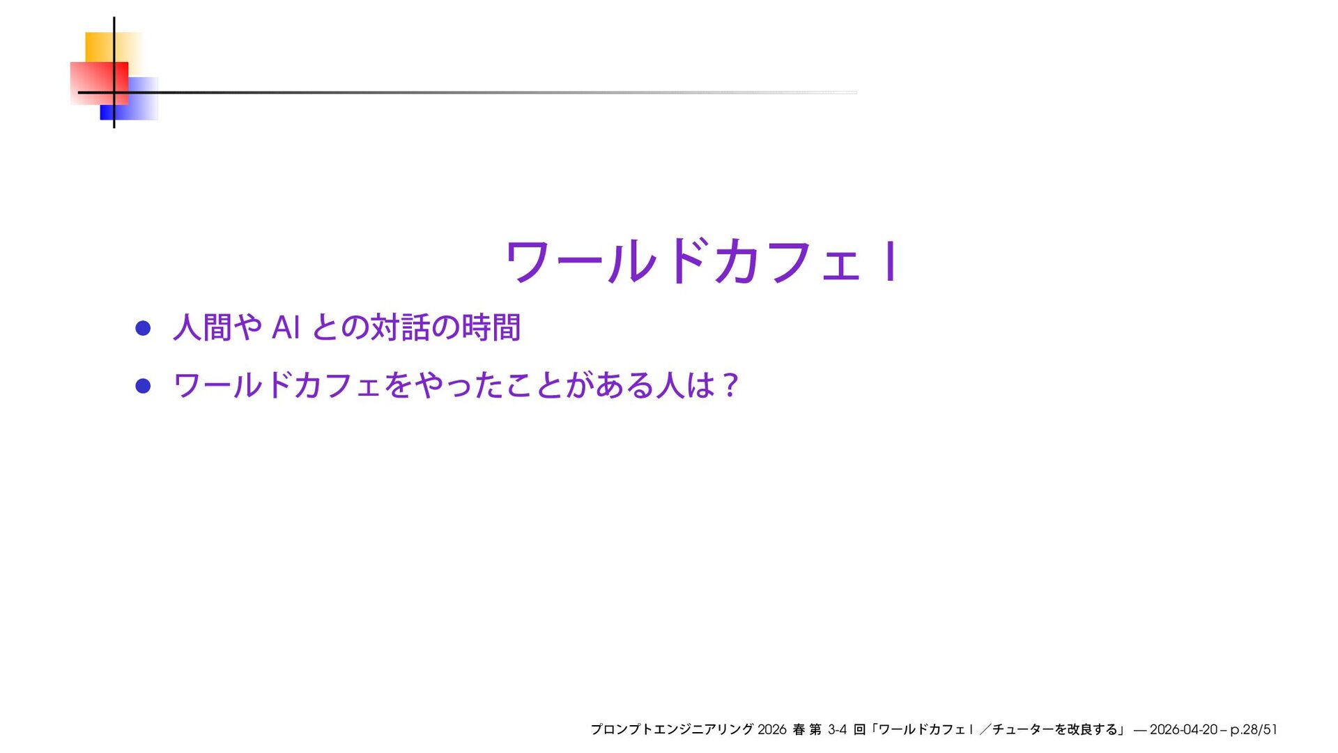 https://speakerdeck.com/ks91/collections/prompt-engineering-2026-spring Discord loglm ( ) 2026 3-4 I — 2026-04-20