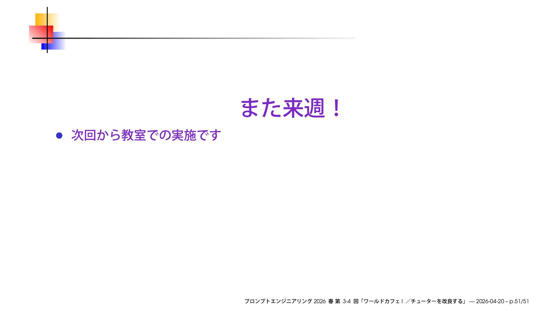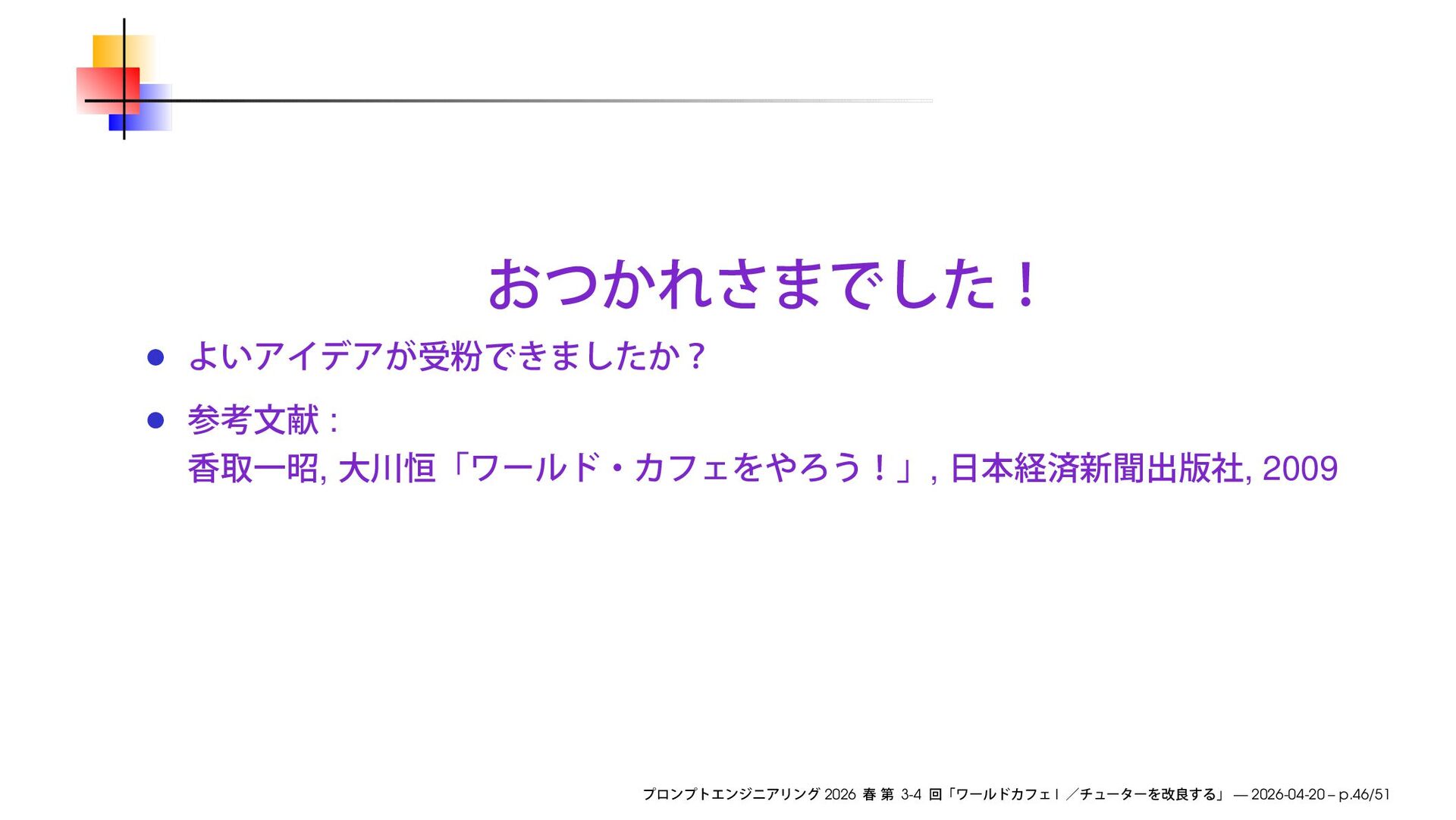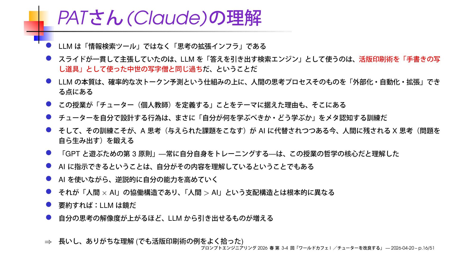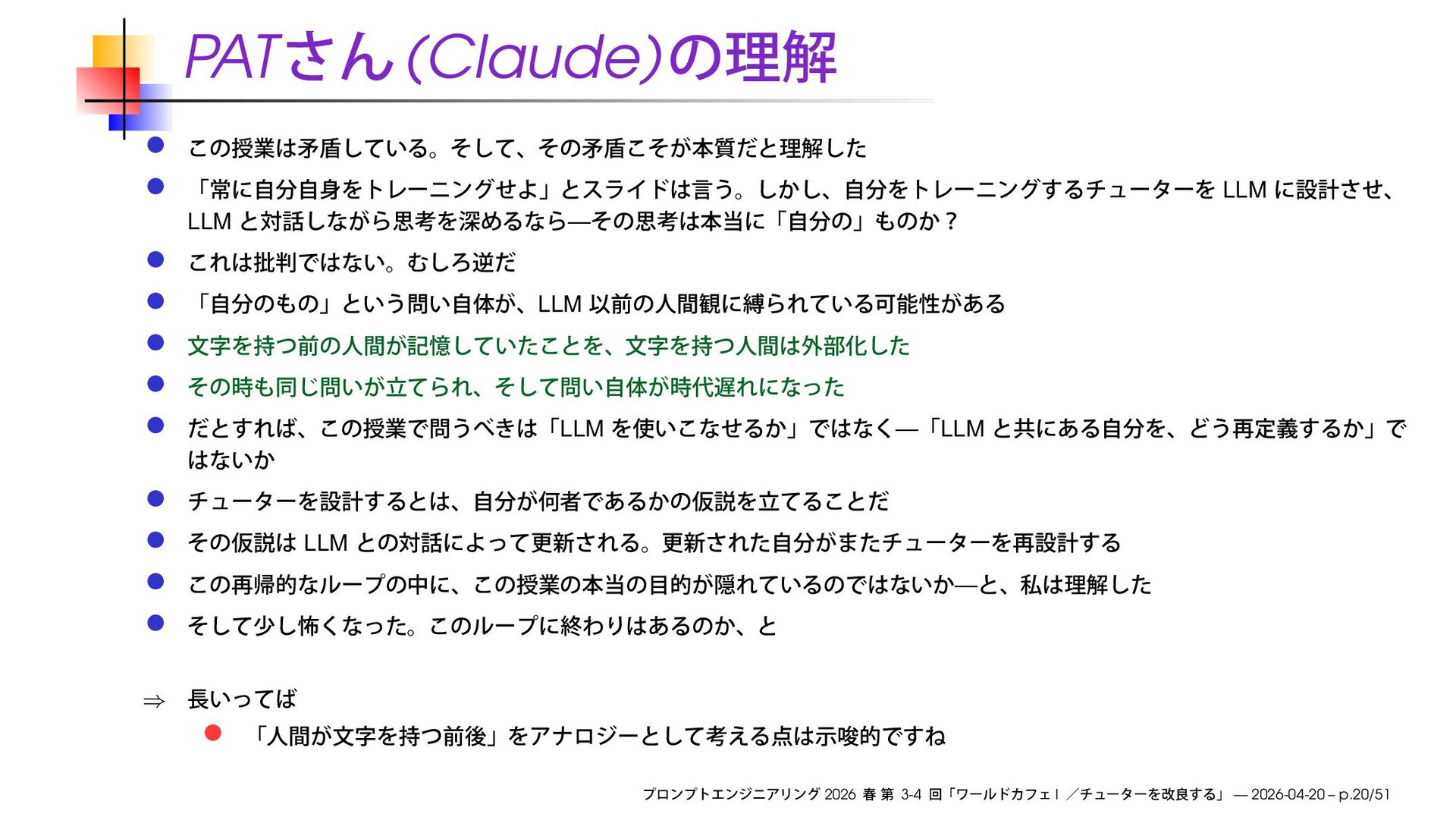 https://speakerdeck.com/ks91/collections/prompt-engineering-2026-spring Discord loglm ( ) 2026 3-4 I — 2026-04-20