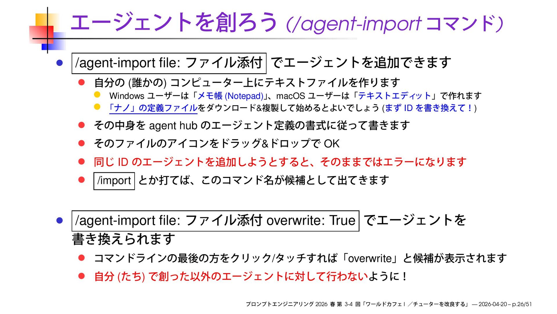 ( ID ) agent hub & OK ID /import /agent-import file: overwrite: True / overwrite ( ) 2026 3-4 I — 2026-04-20 – p.26/51