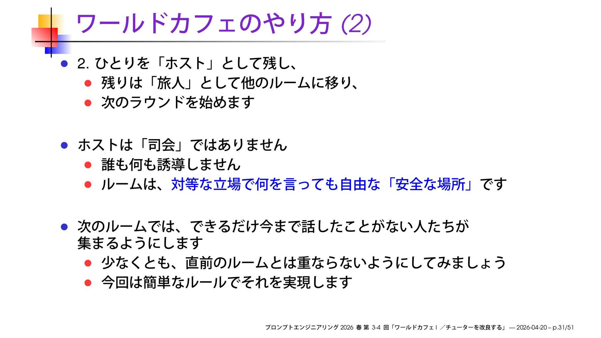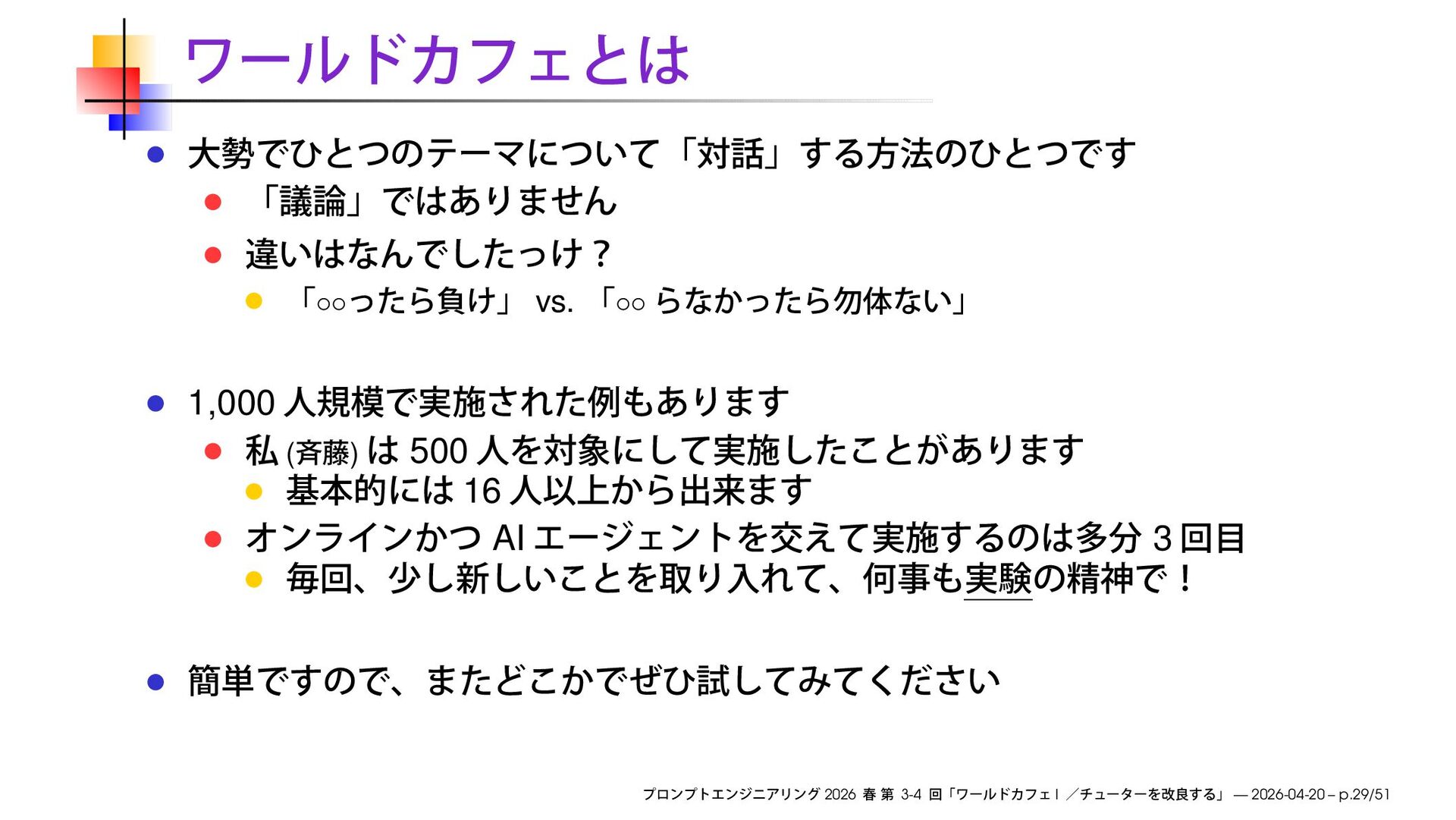 ワールドカフェI /チューターを改良する / World Café I and Improvi...