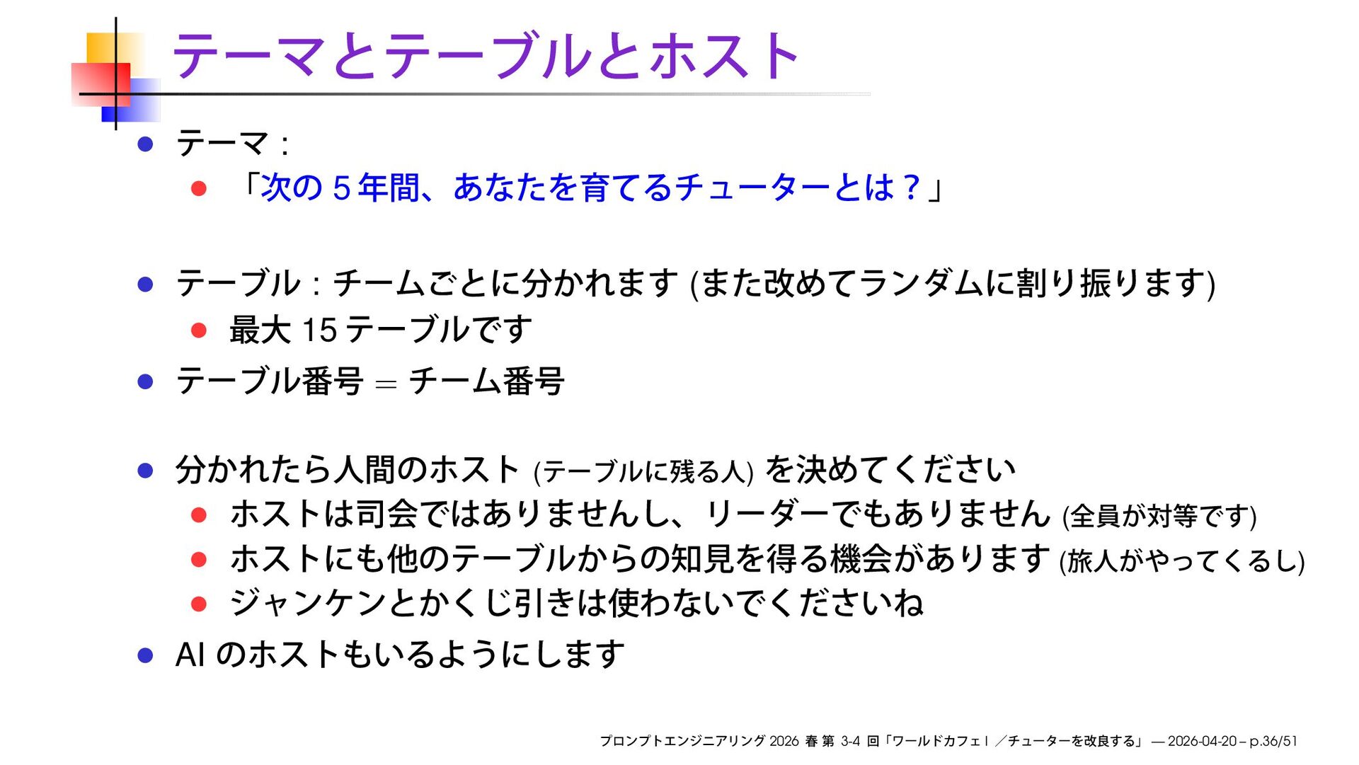 ワールドカフェI /チューターを改良する / World Café I and Improving the Tutors