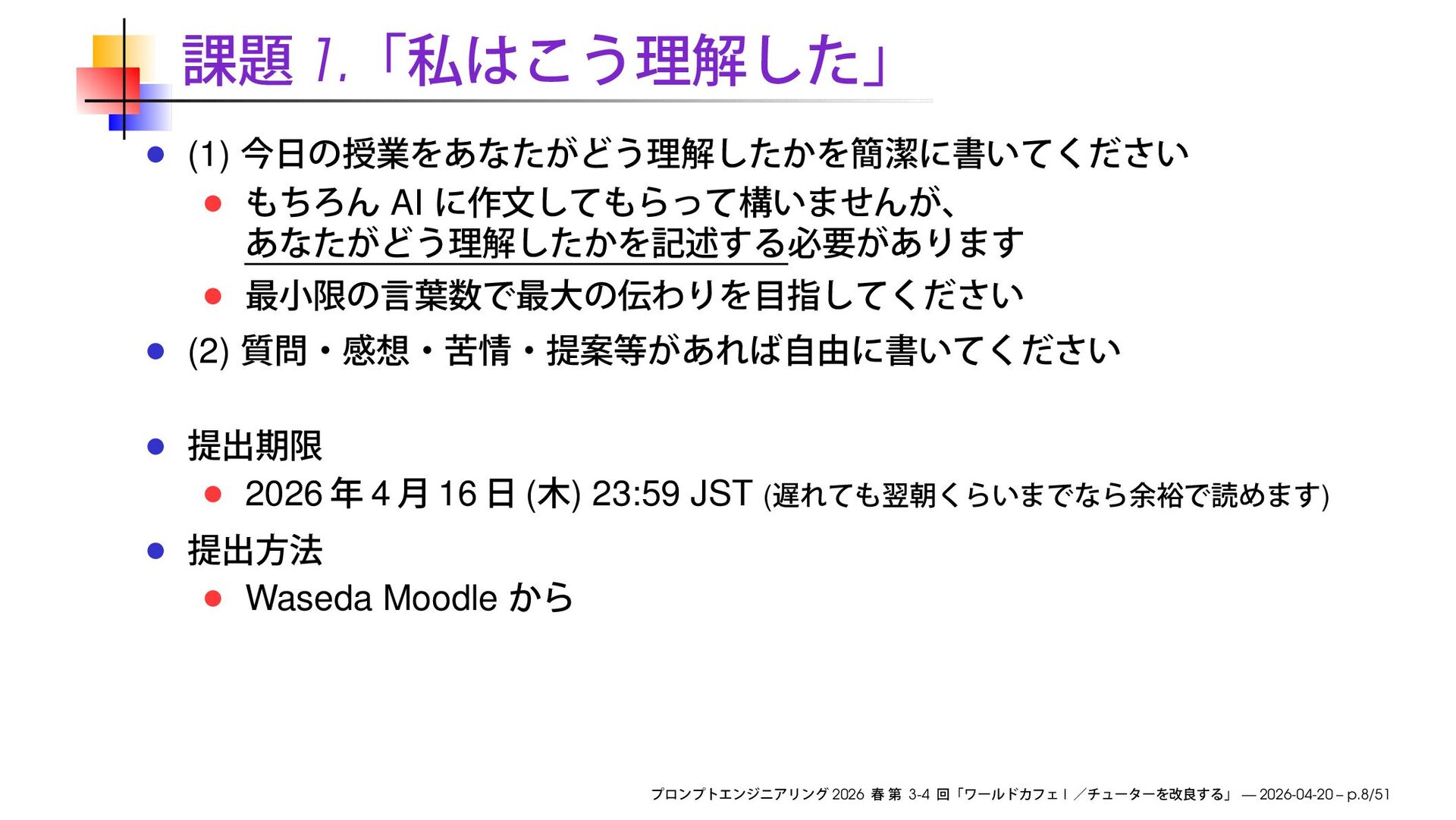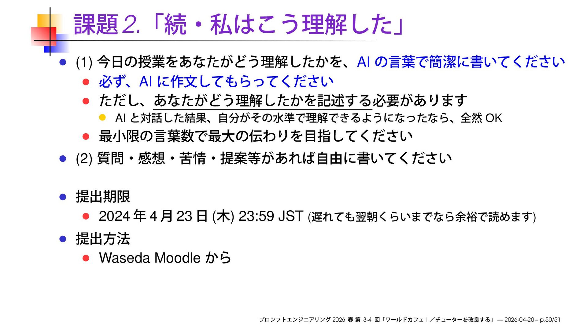 ( ) 23:59 JST ( ) Waseda Moodle 2026 3-4 I — 2026-04-20 – p.50/51