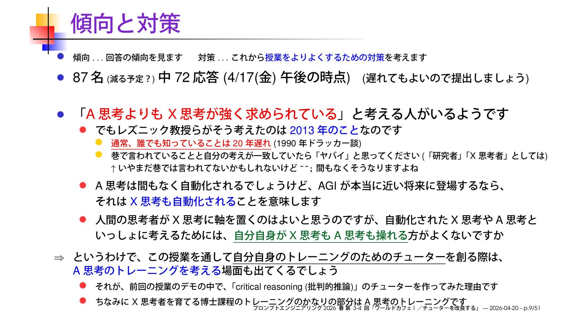 (4/17( ) ) ( ) A X 2013 20 (1990 ) ( X ) ↑ ^^; A AGI X X X A X A ⇒ A critical reasoning ( ) X A 2026 3-4 I — 2026-04-20 – p.9/51