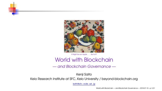 it? World with Blockchain — and Blockchain Governance — Kenji Saito Keio Research Institute at SFC, Keio University / beyond-blockchain.org [email protected] World with Blockchain — and Blockchain Governance — 2018-07-10 – p.1/21