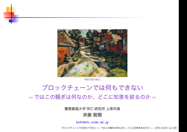 ) ( ) “A timestamp server works by taking a hash of a block of items to be timestamped and widely publishing the hash, such as in a newspaper or Usenet post” “To implement a distributed timestamp server on a peer-to-peer basis, we will need to use a proof-of-work system similar to Adam Back’s Hashcash, rather than newspaper or Usenet posts” – Satoshi Nakamoto (2008) ∼ ∼ – 2016-10-24 – p.10/40