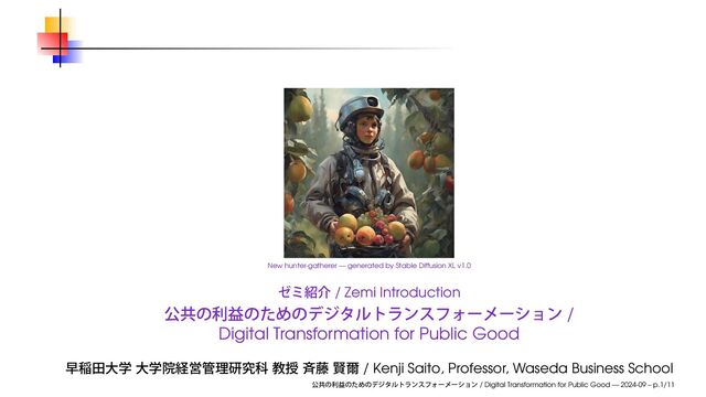 Zemi Introduction / Digital Transformation for Public Good / Kenji Saito, Professor, Waseda Business School / Digital Transformation for Public Good — 2024-09 – p.1/11