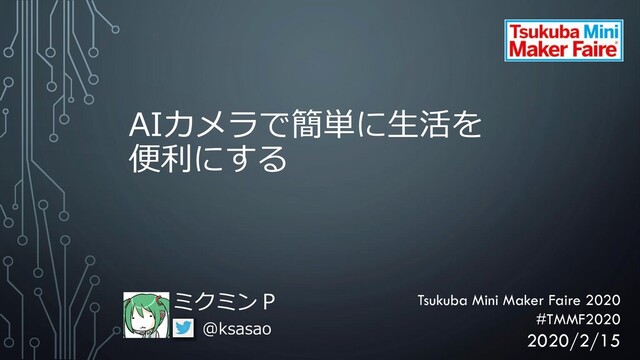 AIカメラで簡単に生活を 便利にする ミクミンP @ksasao Tsukuba Mini Maker Faire 2020 #TMMF2020