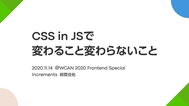 2020年11月14日にWCAN 2020 Frontend Specialというイベントで行うLTのスライドと原稿です。