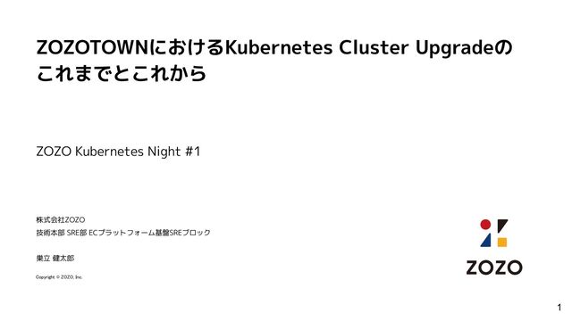 SRE部 ECプラットフォーム基盤SREブロック 巣立 健太郎 Copyright © ZOZO, Inc. 1