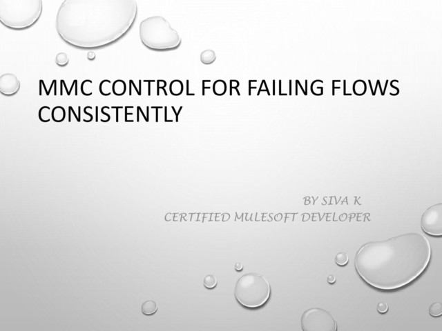 couple of seconds. On each execution, we receive updated statistics of execution errors versus completed executions. From these values, we subtract the same values recorded in the previous run so that we get the values for just this period. Once this calculation is complete, we divide the errors with the total events to get a ratio of the two values. If the ratio exceeds a certain threshold (by default set to 0.5), then the String class variable constantlyFailingString is set to true. Having the monitoring code ready, we need to instruct Mule to execute this code every few seconds; 10 seconds for example . We also need to tell ConsistentlyFailingMonitor which Flow to monitor. Spring comes in very handy to do just that. Spring code we need add the in the simple web service mule flow and it follows like