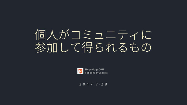 そもそもコミュニティって なに? MoquMoquCOM kobashi syunsuke syunsukekobashi.me