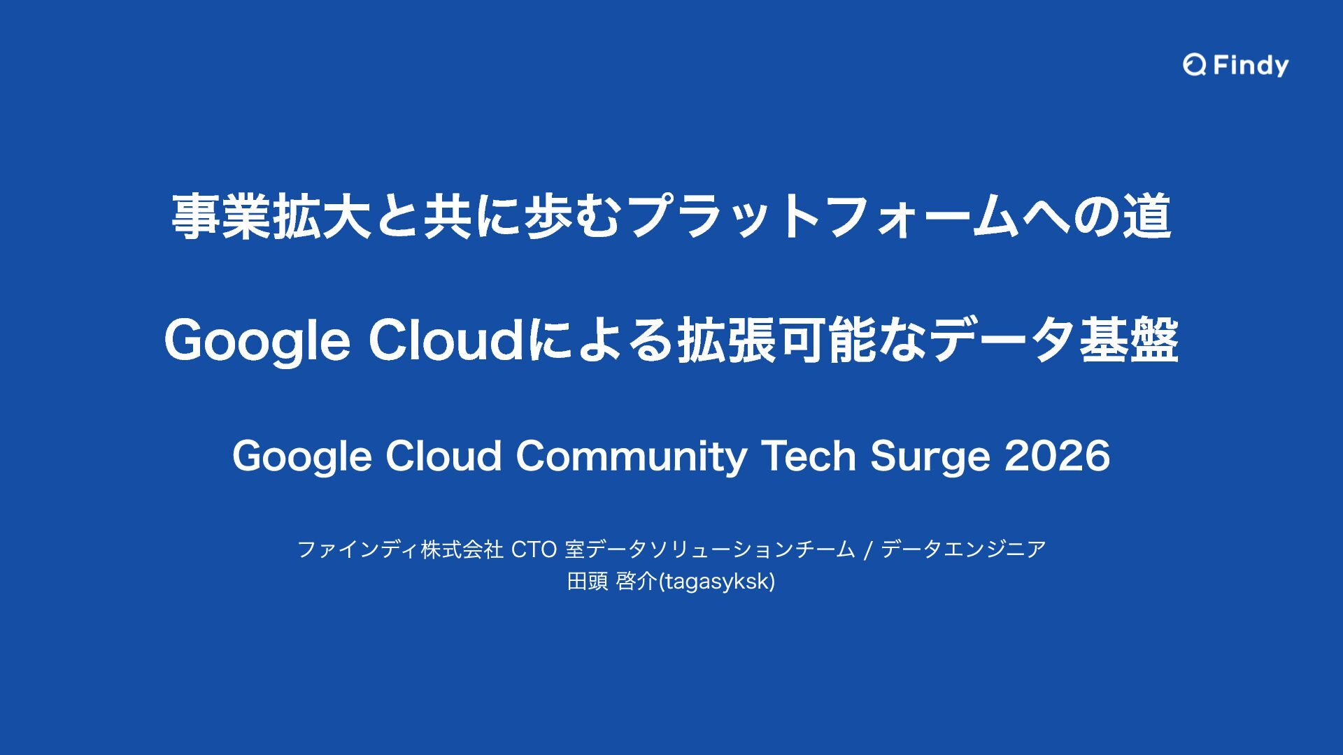 事業拡大と共に歩むプラットフォームへの道 Google Cloudによる拡張可能なデータ基盤 Google Cloud Community Tech Surge 2026 ファインディ株式会社