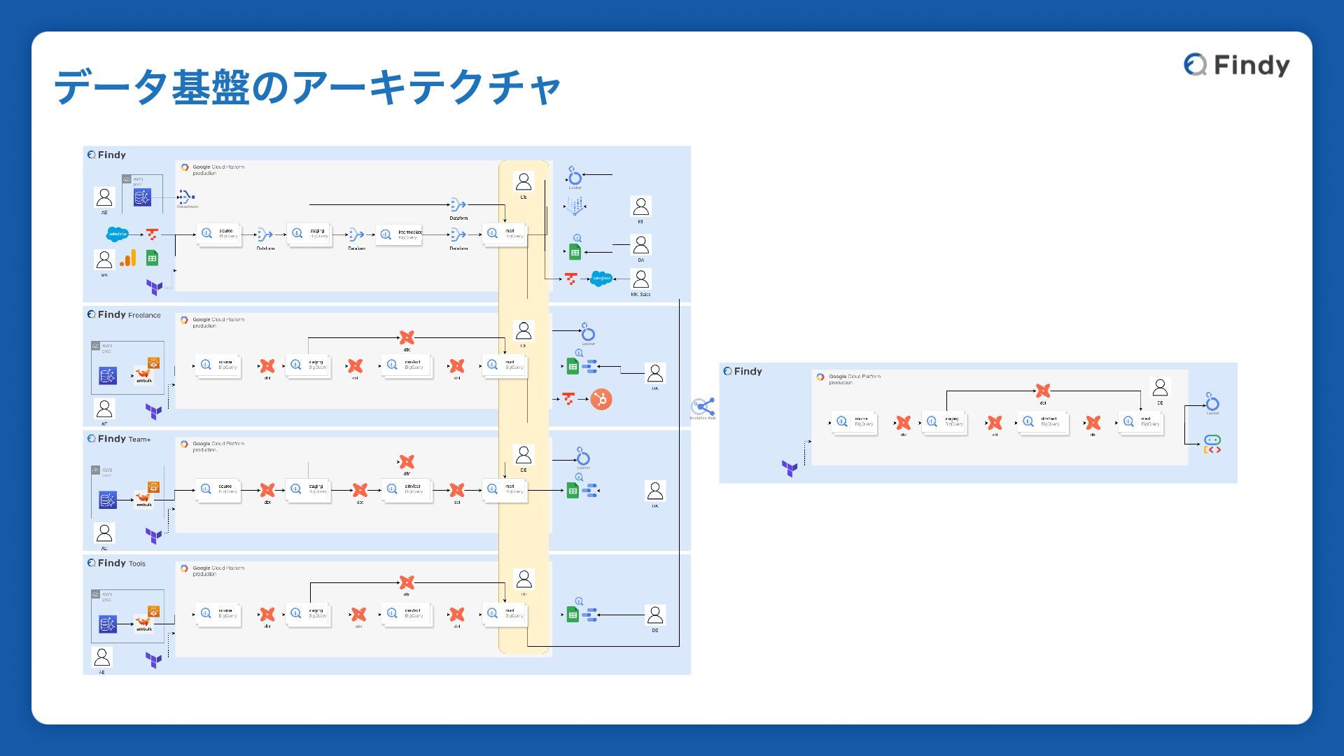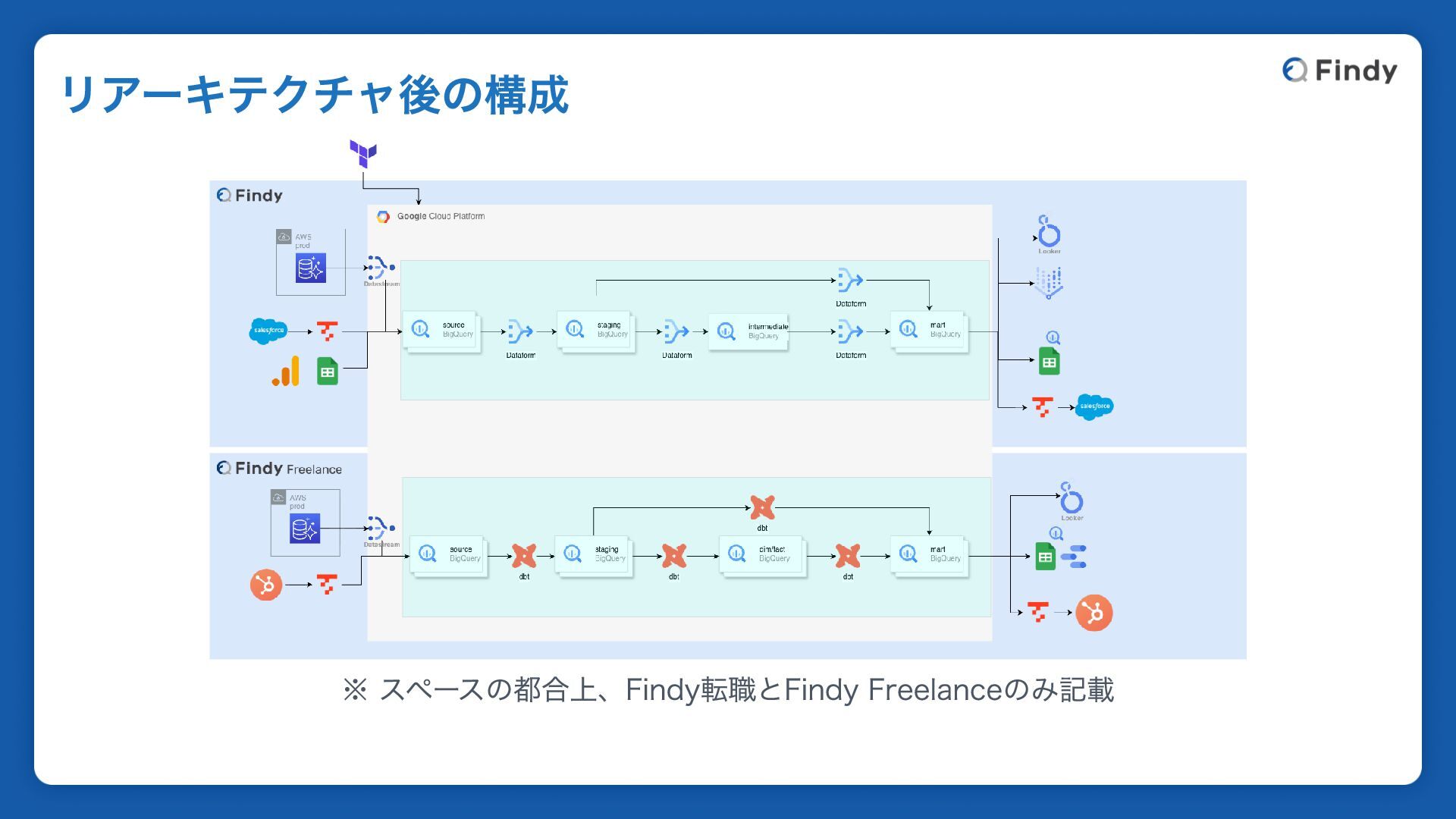 ※ スペースの都合上、Findy転職とFindy Freelanceのみ記載 リアーキテクチャ後の構成