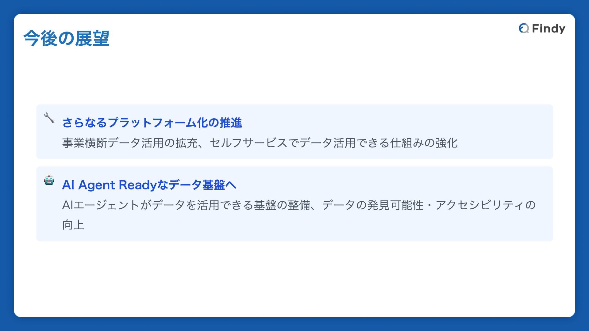 今後の展望 AI Agent Readyなデータ基盤へ 本日の内容