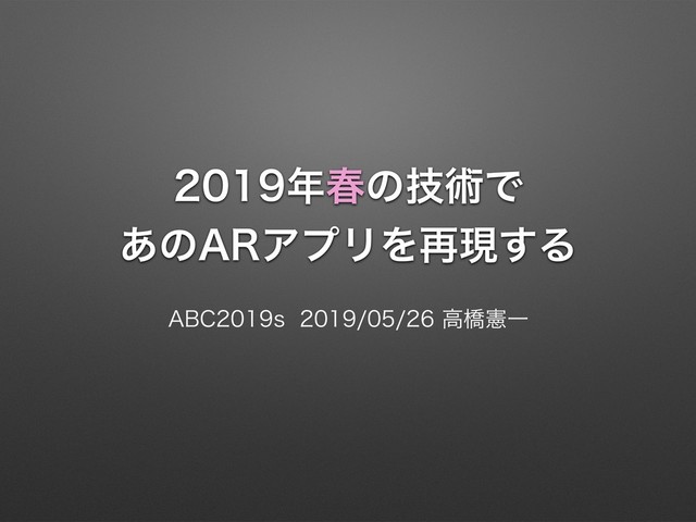 ABC2019sのセッションで使用したスライドです。17ページから38ページのARCoreの機能説明ではGoogle I/O 2019で発表された新機能の話も入っています。 強化されたAugmented ImagesなどGoogle I/Oで発表されたARCoreの最新機能、そしてSceneform, Firebaseなど2019年春の技術を駆使してスマートフォン黎明期のARアプリであるセカイカメラを再現したらどのような構成になるのか実験、考察してみた記録です。