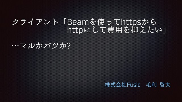 ΫϥΠΞϯτʮ#FBNΛͬͯIUUQT͔Β ɹɹɹɹɹɹɹIUUQʹͯ͠අ༻Λ͍͑ͨʯ ʜϚϧ͔όπ͔ גࣜձࣾ'VTJDɹໟརܒଠ