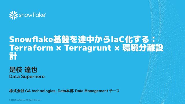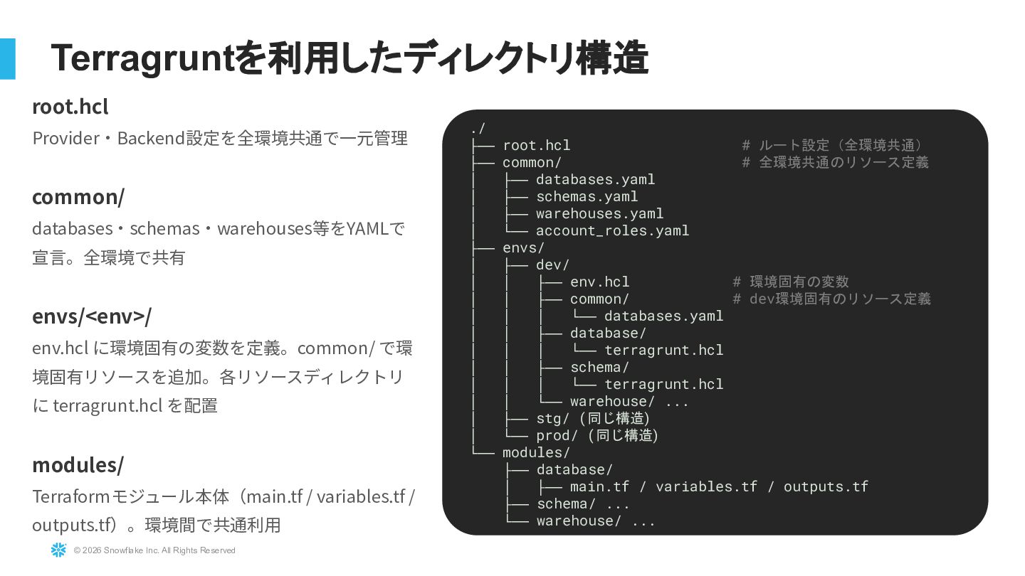 Snowflake基盤を途中からIaC化する:Terraform × Terragrunt × 環境分離設計