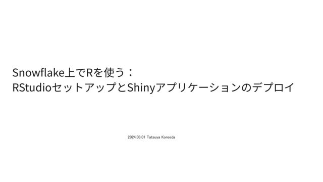 Snowflake上でRを使う: RStudioセットアップとShinyアプリケーションのデプロイ 2024.03.01 Tatsuya Koreeda