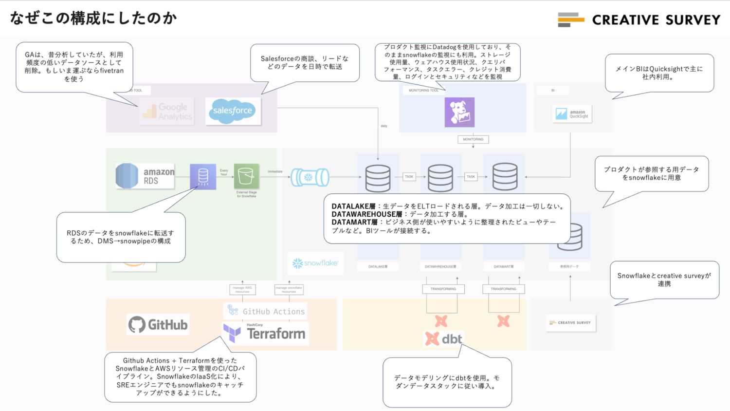 夏データフェス 育てろ!!まだ最強じゃないみんなのデータアーキテクチャの際の登壇資料になります。 https://usergroups.snowflake.com/events/details/snowflake-japan-west-presents-xia-detahuesu-yu-teromadazui-qiang-ziyanaiminnanodetaakitekuchiya/