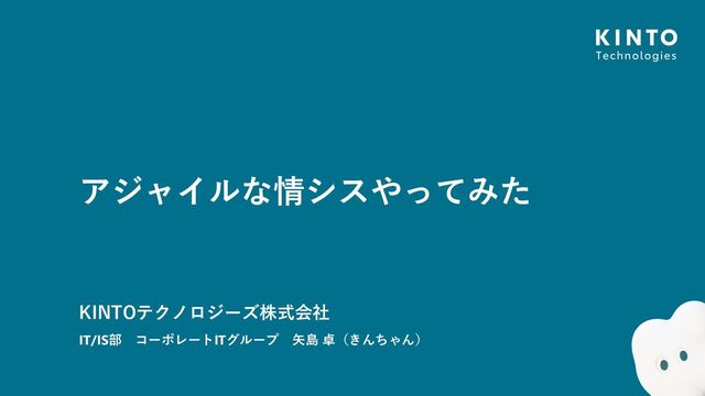 兼務:生成AI活用プロジェクト、技術広報グループ 好き:ファシリテーション、アジャイルコーチング 活動:社内アジャイルCoP、学びの道の駅 趣味:妻の笑顔を見ること KINTOテクノロジーズ株式会社 IT/IS部 コーポレートITグループ 矢島 卓 / きんちゃん 2005/04 2011/08 2020/08 2023/01 KINTOテクノロジーズ 株式会社 (SW開発/コーポレートIT) テレシスネットワーク 株式会社 (占い/Webエンジニア) 株式会社エイチーム (ITサービス/IT全般) 株式会社MARUWA (製造業/IT統括)