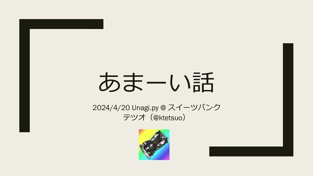 あまーい話 2024/4/20 Unagi.py @ スイーツバンク テツオ(@ktetsuo)