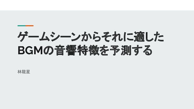 2020. • Chris Donahue, 他2名: “The NES Music Database: A Multi-Instrumental Dataset with Expressive Performance Attributes”, 2018. • Chuang Gan, 他4名: “Foley Music: Learning to Generate Music from Videos”, 2020. • 根本さくら, 他10名: “物語のシーンにおける登場人物の感情状態とBGMの関係性抽出”, 2020. • 藤原優花, 他3名: “眼鏡型計測端末を用いたゲームプレイにおける重要なシーン抽出手法の検討”, 2019. • 獅々堀正幹, 他3名: “Earth Mover’s Distanceを用いたハミングによる類似音楽検索手法”, 2007. • Ali C. Gedik, Barış Bozkurt: “Pitch-frequency histogram-based music information retrieval for Turkish music”, Signal Processing, 2010. • Nivethitha Somu, 他2名: “A deep learning framework for building energy consumption forecast”, 2021. • Rial A. Rajagukguk, 他2名: “A Review on Deep Learning Models for Forecasting Time Series Data of Solar Irradiance and Photovoltaic Power”, 2019. • Y. Lecun, L. Bottou, Y. Bengio, P. Haffner: “Gradient-based learning applied to document recognition”, 1998. • Sepp Hochreiter, Jürgen Schmidhuber: “Short-Term Memory”, 1997. • Diederik P. Kingma, Jimmy Ba: “Adam: A Method for Stochastic Optimization”, 2015. • Sashank J. Reddi, 他2名: “On the Convergence of Adam and Beyond”, 2018. はじめに > 関連研究