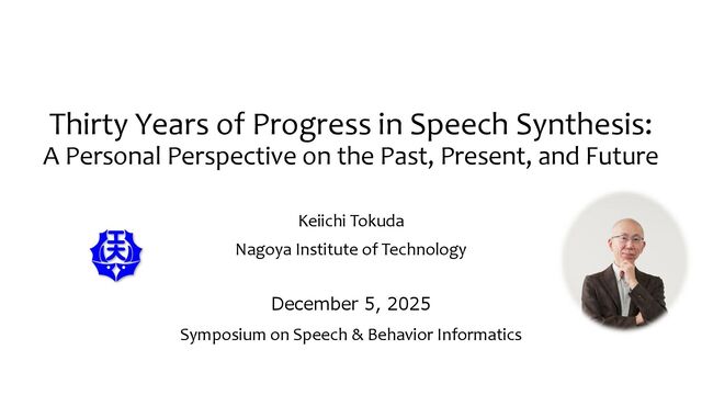 Speech synthesis is a technology that generates speech waveforms corresponding to input text, and it has been a subject of sustained research for many years. The fundamental framework of statistical speech synthesis is to generate speech for any given input text based on a large database of paired speech waveforms and corresponding text. This generation process is generally divided into multiple stages—text analysis, acoustic modeling, and waveform generation—each of which is modeled using statistical machine learning techniques, and more recently, deep learning methods. In this talk, I will provide an overview of the progress made in statistical approaches to speech synthesis over the past few decades, incorporating personal episodes and even some failure stories from my own experience. I will also discuss ongoing challenges related to speech quality, controllability, and application diversity, and present my personal perspective on future directions in the field.