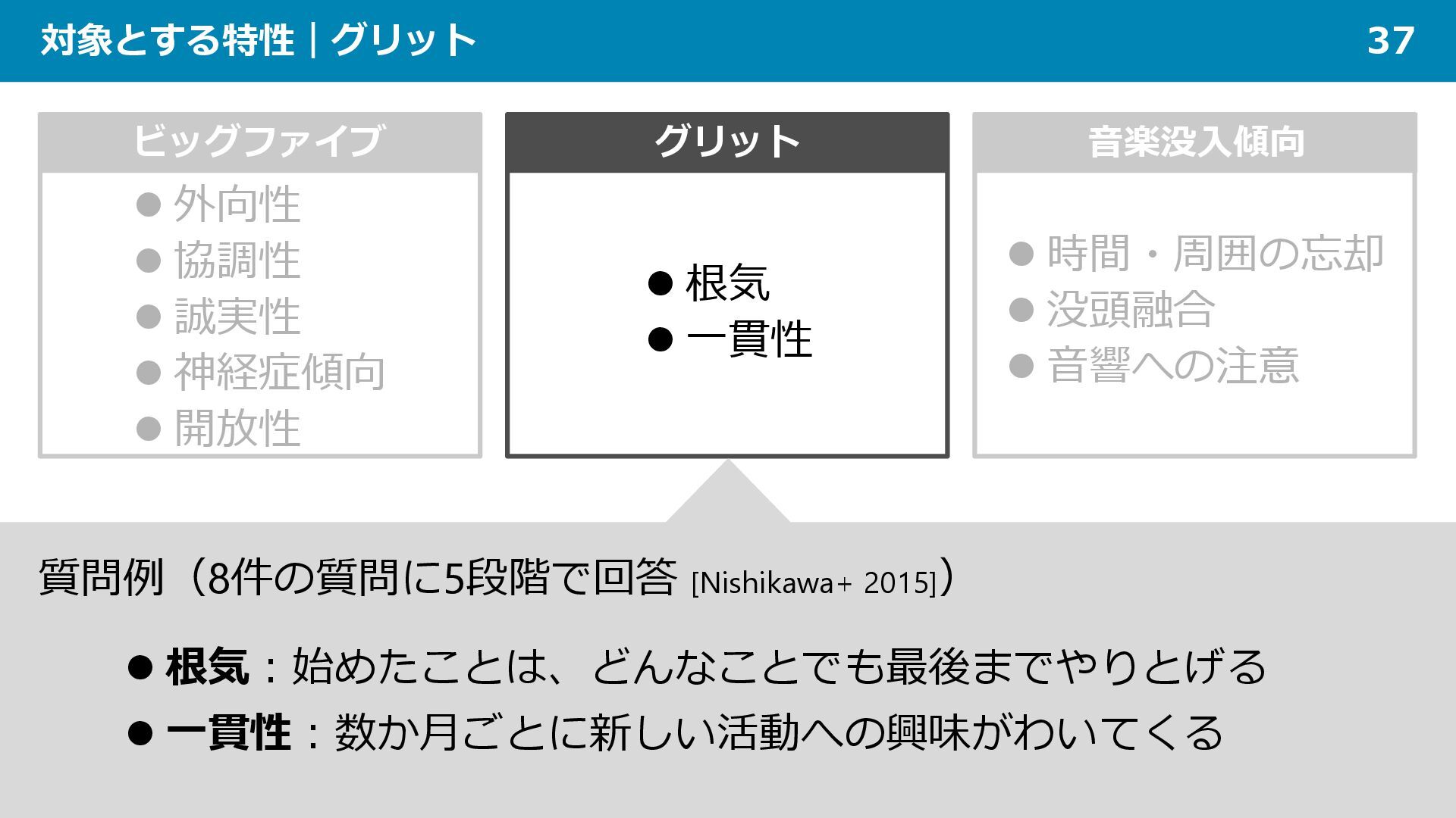 対象とする特性|グリット 37 ビッグファイブ グリット 音楽没入傾向 外向性 協調性