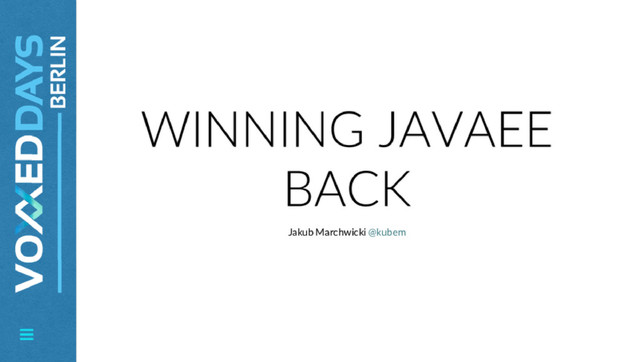 This presentation will walk through multiple libraries that can help you change your project from "This is The Standard Even If It Doesn't Fit" way to a something far more approachable, where your tools doesn't feel like the Maslow's Hammer. I'll be sharing some experience from multiple trainings, projects and refactorings of old-but-still-in-production JavaEE applications and tools we used to get away The Standard.