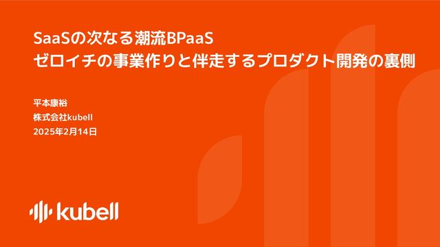 2025年2月14日に開催されたDevelopers Summit「SaaSの次なる潮流BPaaS ゼロイチの事業づくりと伴走するプロダクト開発の裏側」における発表資料です。 イベントページ:https://event.shoeisha.jp/devsumi/20250213 登壇概要:https://event.shoeisha.jp/devsumi/20250213/session/5577 登壇者:株式会社kubell BPaaS事業 VPoE 平本 康裕