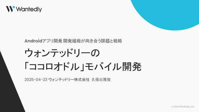 © 2025 Wantedly, Inc. ウォンテッドリーの 「ココロオドル」モバイル開発 Androidアプリ開発 開発組織が向き合う課題と戦略 2025-04-23 ウォンテッドリー株式会社