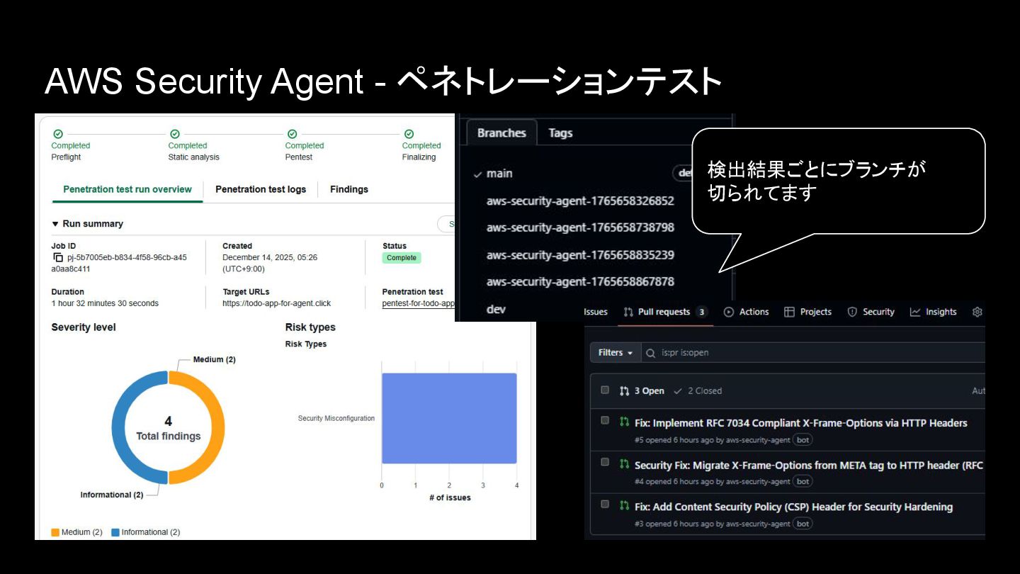 AWS Security Agent - ペネトレーションテスト 検出結果ごとにブランチが 切られてます