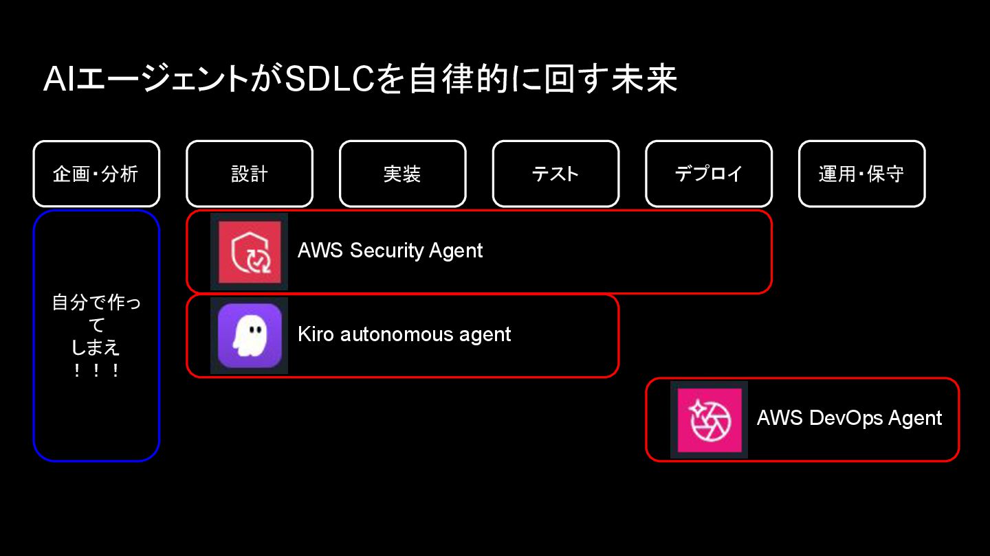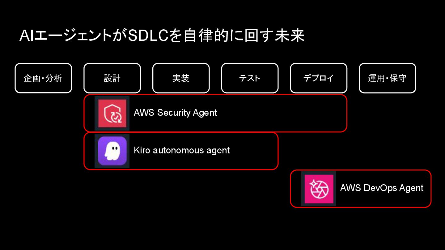 AIエージェントがSDLCを自律的に回す未来 企画・分析 設計 実装 テスト デプロイ 運用・保守 AWS DevOps Agent