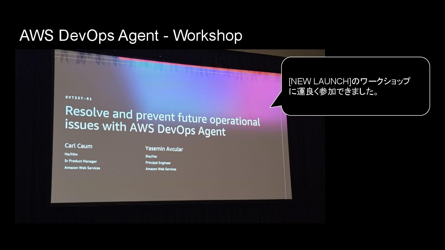 AWS DevOps Agent - Workshop [NEW LAUNCH]のワークショップ に運良く参加できました。